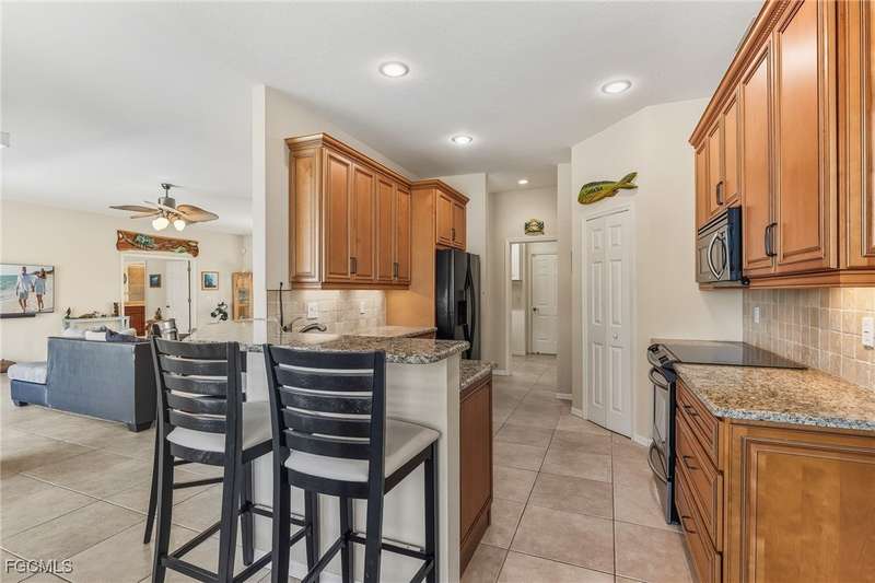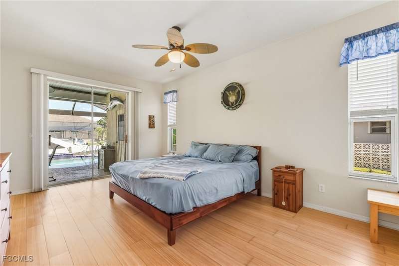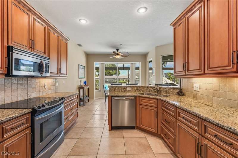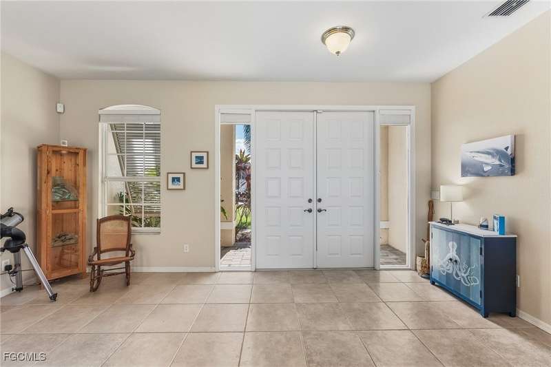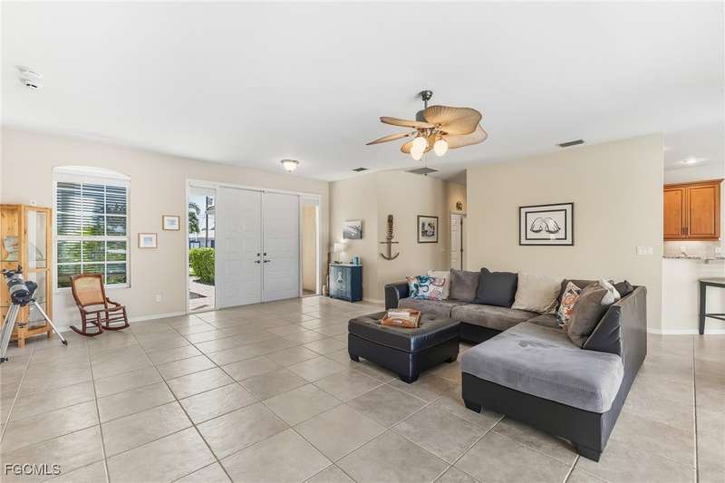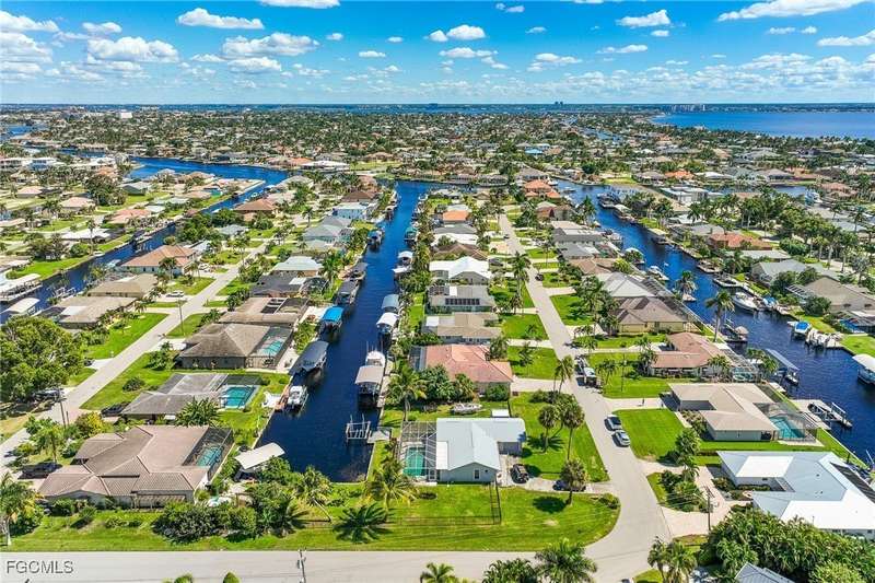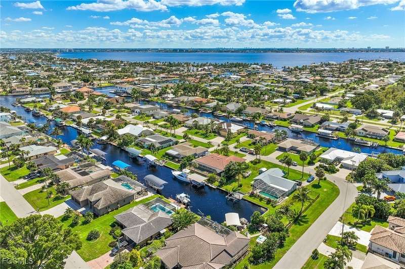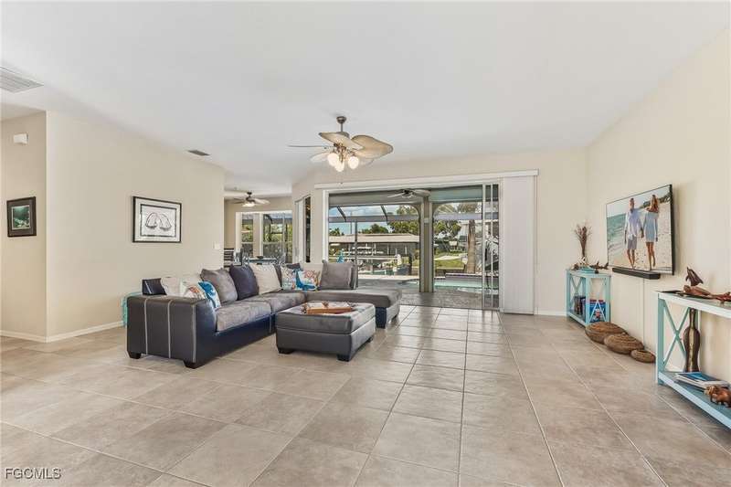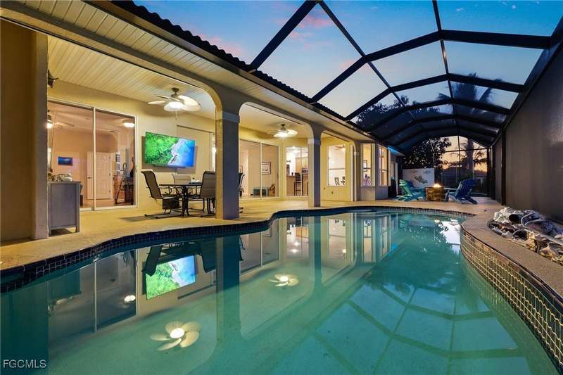 Welcome to the boater's dream; Homes with this level of water access and dockage don't come around often! This premium, sailboat-accessible Gulf Access home is built for serious boaters who demand more than just water views. Tucked away on a quiet cul-de-sac in one of Cape Coral's most sought-after neighborhoods, this ranch-style home offers unmatched big boat accommodations - including no bridges and direct river access in under 5 minutes. At the water's edge, you'll find an 87-foot Captain's Walk dock, complete with a Golden 28,000 lb. dual-motor lift 16' x 28' with canopy for your offshore vessel, plus tie-up space for a second boat or water toys. Whether you run a sportfish, cabin cruiser, or catamaran, this setup delivers the dockage flexibility and capacity rarely found in residential properties. Inside, the 3-bedroom, 2.5-bath layout centers around an open-concept design with soaring ceilings and pocketing sliders that dissolve the boundary between indoors and your outdoor oasis. The chef-friendly kitchen features granite counters and is perfectly positioned for entertaining with pool and canal views. Step into the lanai and you'll immediately appreciate the newer panoramic screen enclosure, framing the heated pool and creating the ultimate entertaining or wind-down space after a day on the water. The master suite is its own retreat, featuring a spacious bath with dual vanities, walk-in shower, and soaking tub - the ideal place to recharge after a long run offshore. Additional highlights: - Huge, oversized air-conditioned 2-car garage with ample storage - Concrete dock with water & power - Never flooded/Very low flood insurance costs - Located just minutes from Tarpon Point & the Westin. Whether you're cruising out to the Gulf, relaxing by the pool, or entertaining on the lanai, this home is designed to elevate your boating lifestyle.