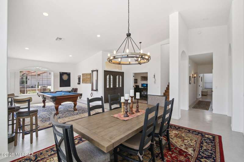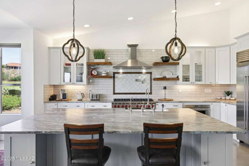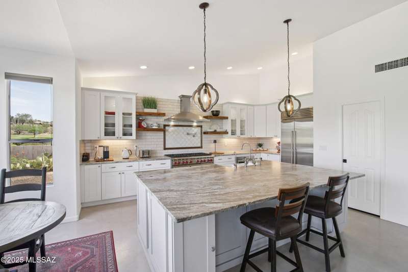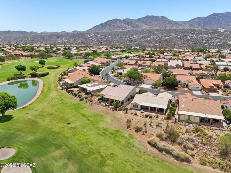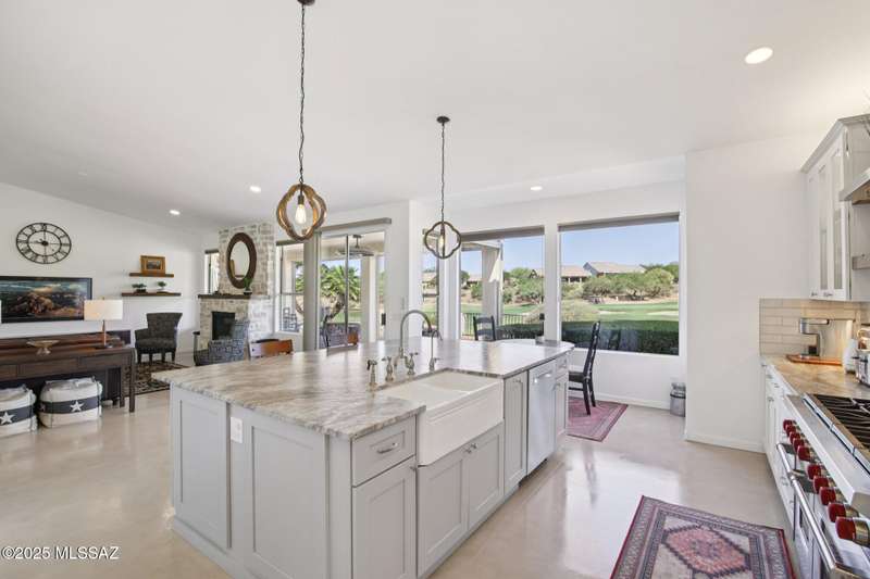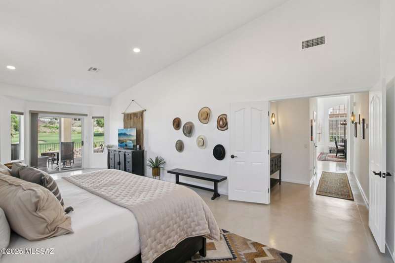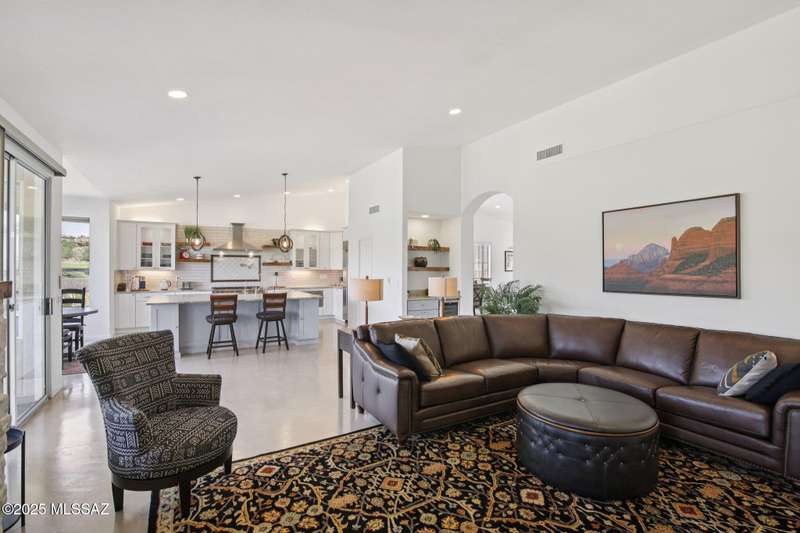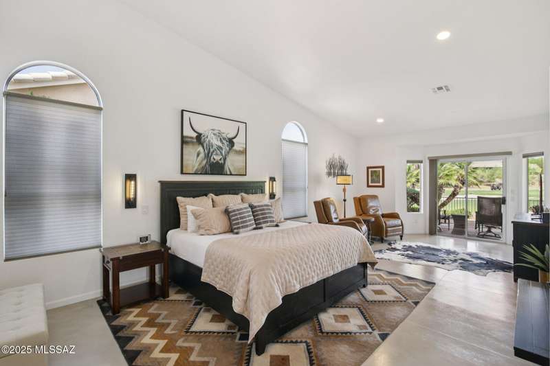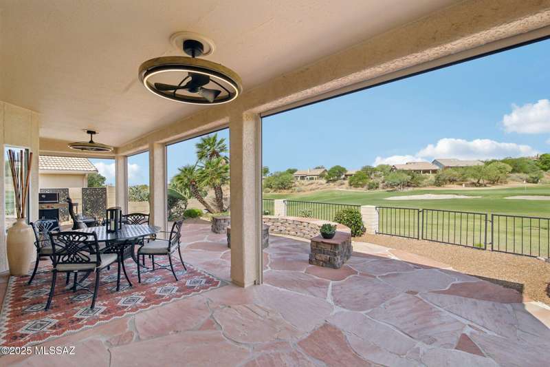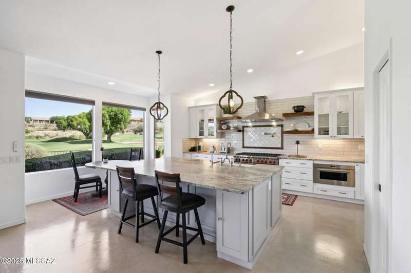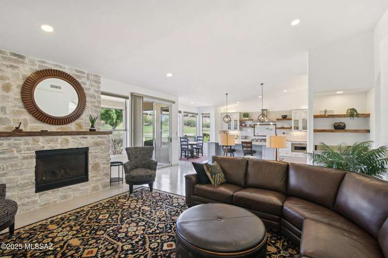 Are you looking for the ultimate Saddlebrooke home that offers views, privacy and contemporary style...then don't miss this home. Absolutely stunning Galleria has been completely remodeled from top to bottom. Situated on the 3rd green of the Tucson nine of the 27-hole Saddlebrooke Golf Course, this home is a rare find. Watch the wildlife go by as you take advantage of golf course and lake views, multiple outdoor living areas, large covered patio, new electric sunshades and outdoor firepit with flagstone patio. Home is safely distanced from the large green so you can relax and enjoy golfers line up and drain their putts. As you step inside you are greeted by a bright airy interior with vaulted ceilings, concrete floors throughout, and large pictures windows that flood the home with light.
