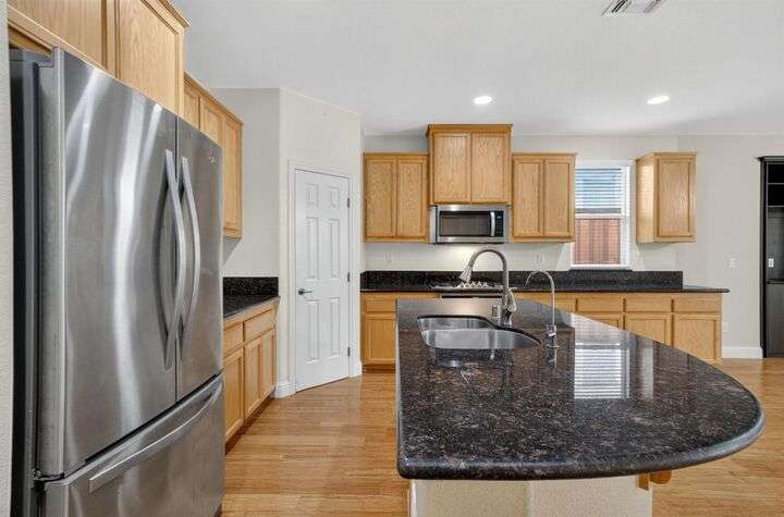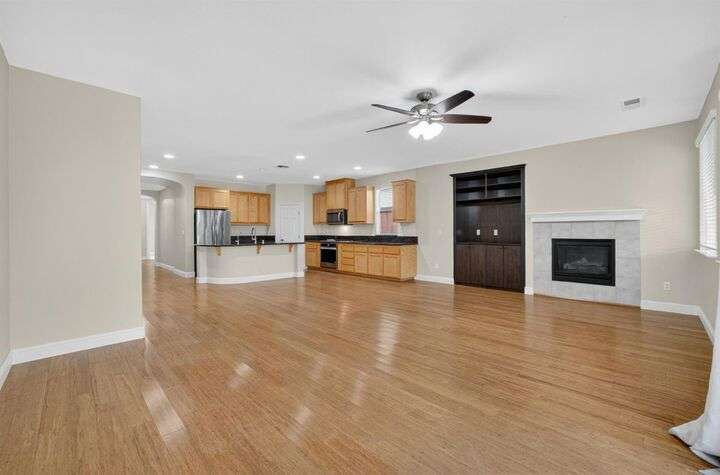 Welcome to 7208 Artisan Cir, a beautifully maintained home in one of Roseville's most desirable locations! This 3-bed, 2-bath residence offers an open-concept layout with rich bamboo flooring and a light-filled living space perfect for both everyday comfort and entertaining. The kitchen features granite countertops and overlooks the dining and family areas, creating a seamless flow throughout. Step outside to a low-maintenance backyard complete with turf, a covered patio, and plenty of space to relax or host gatherings. The spacious primary suite includes a private bath and walk-in closet. Set in a quiet, well-kept neighborhood near a large park, this property offers unmatched convenience, just minutes from shopping, dining, top-rated schools, and with easy access to Hwy 65. Move-in ready and ideally situated, this is a true Roseville gem!