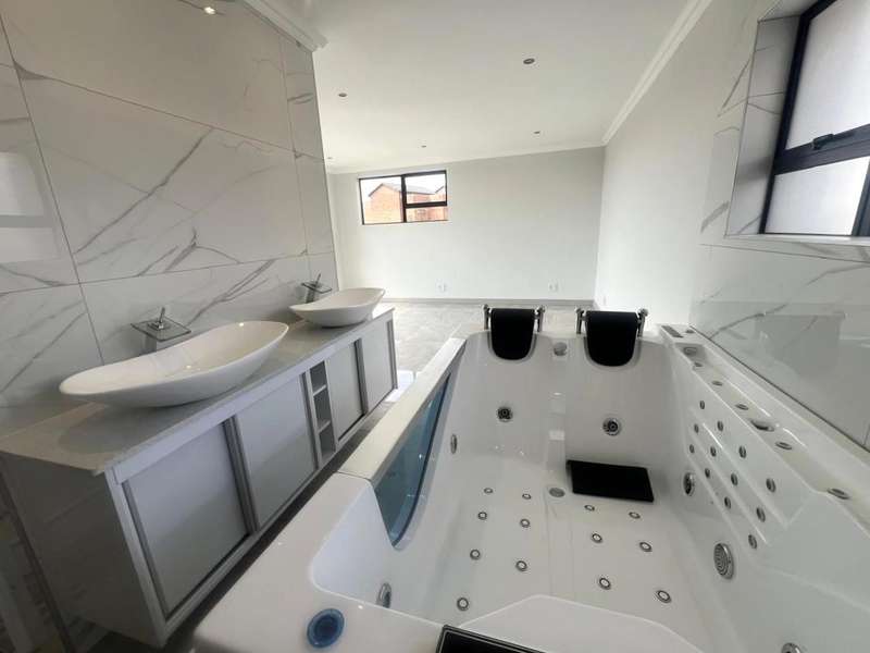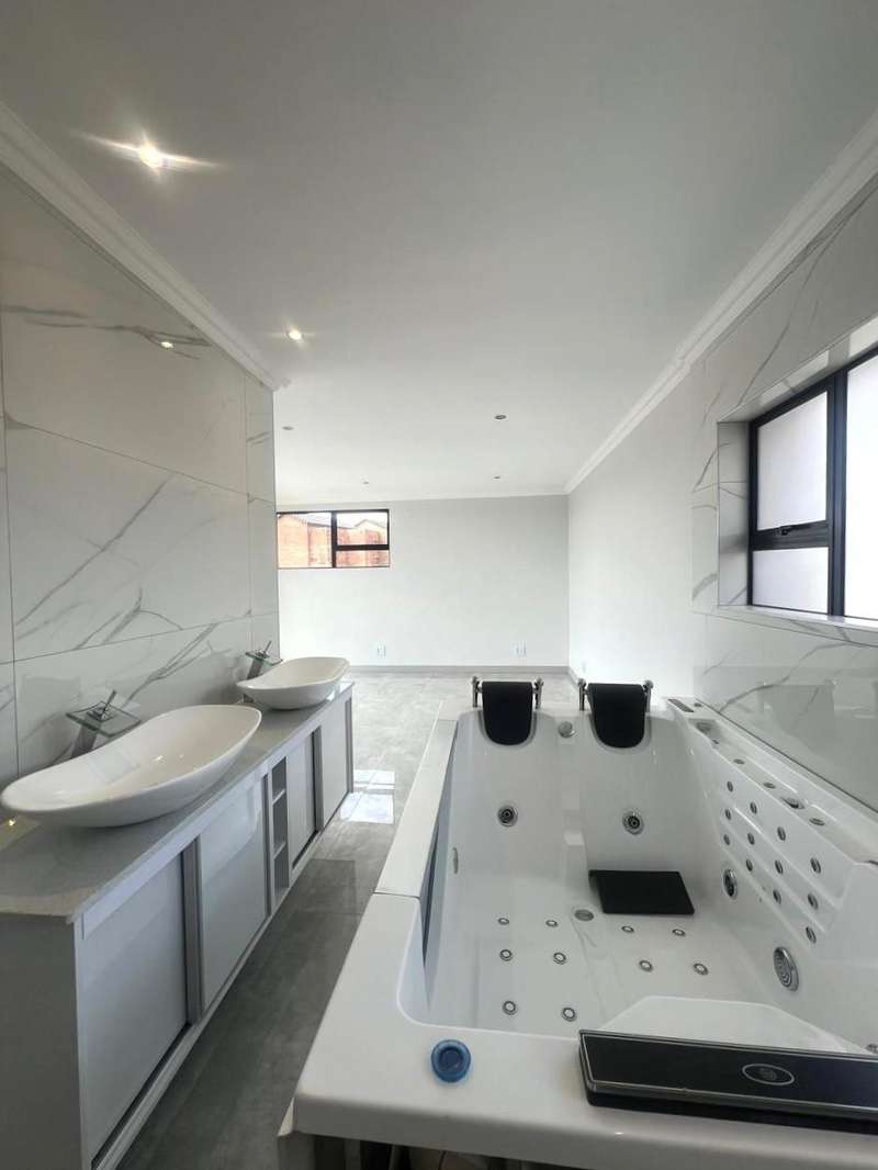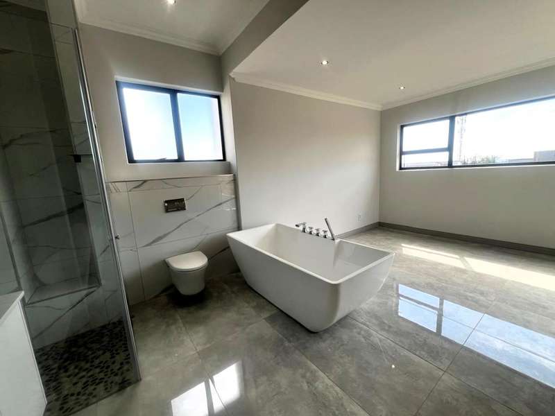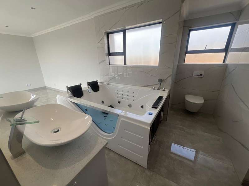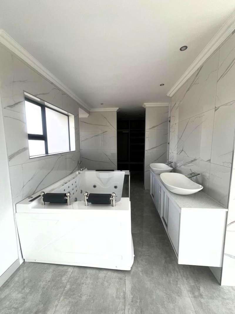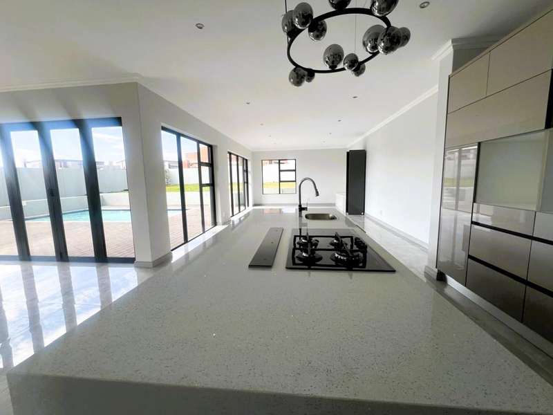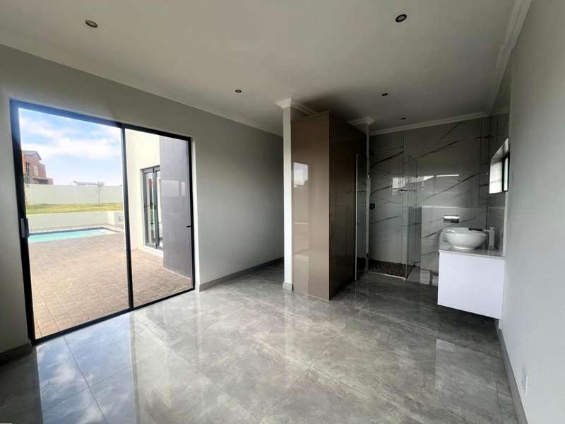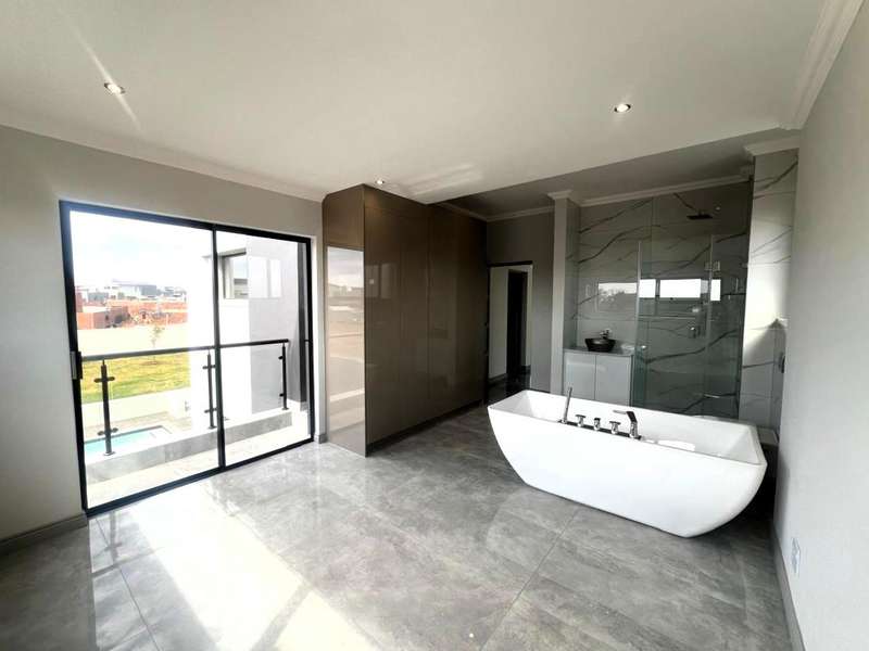 This exquisite family home, meticulously designed for the discerning buyer, seamlessly blends luxury finishes with functional living spaces. Situated in the prestigious Midstream Heights Estate, it offers an upscale living experience renowned for its security. The family-centric community boasts excellent private schools conveniently located nearby, central to the community area. Additionally, retail shopping centers with upmarket restaurants provide everyday convenience. The state-of-the-art Medi Clinic, offering excellent medical facilities, is also in close proximity to the Midstream retail centres. Upon entering this beautiful home, the modern kitchen with its exquisite finishes immediately stands out, leading to the living and entertainment areas. The home exudes sophistication and elegance with four sunny, north-facing bedrooms, each complete with an en-suite bathroom. The property also includes a private PJ lounge, perfect for movie nights or gaming, a kitchenette, and a dedicated study desk ideal for remote work or as a home office. The spacious living areas are thoughtfully designed, featuring an enclosed patio, a sparkling swimming pool, and a boma area for unforgettable evenings under the stars?Çöan entertainer's dream! Two secure, larger automated garages provide direct access to the home, while the staff quarters have en-suite facilities with a private entrance. This exceptional residence offers a blend of luxury and practicality, designed to meet the highest standards of contemporary living. Transfer Duties apply