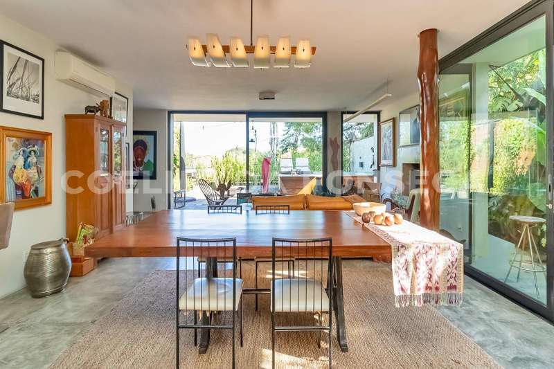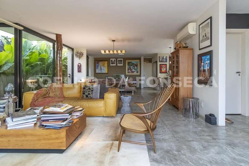Com uma reforma moderna e acabamentos impecáveis, os ambientes integrados e as amplas portas de vidro conectam com o verde do jardim de inverno e com a piscina.