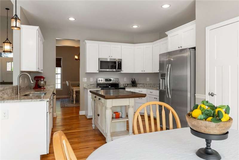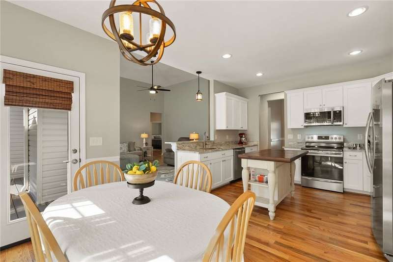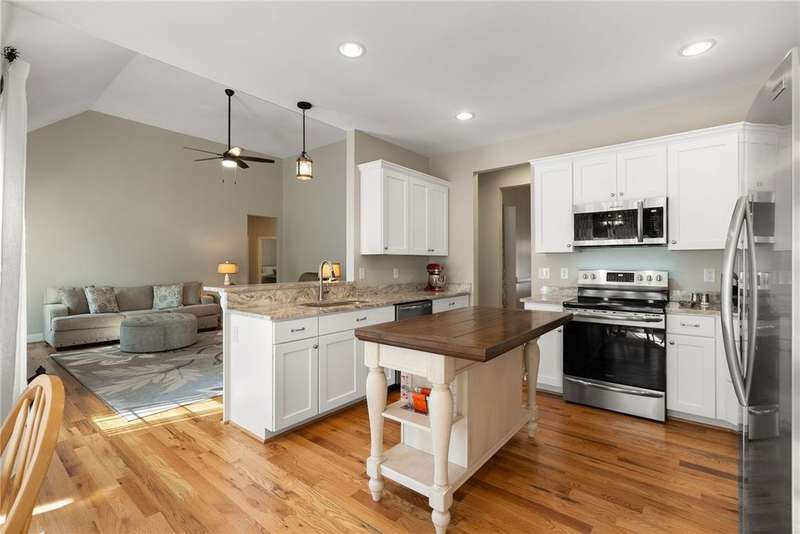 The home you want to build and don't have to wait for! Don't miss this like-new, main level home located in Stone Pond subdivision. Loads of natural light flood the entire home. Large windows and tall ceilings are anchored by a gas fireplace. An open floor plan design features a spacious dining room, eat-in kitchen and living area. The split floor plan offers three bedrooms with two full baths on one end of the vaulted living room and a fourth bedroom, third full bath on the other. Off the breakfast nook is an open deck that overlooks a community pond. The primary suite features a large window overlooking the pond with a vanity seating area, an oversized walk-in closet, tile shower and frameless shower door. The entire home offers solid oak floors, solid surface granite counters and is flooded with voluminous natural light. Venture to the backyard and enjoy the outdoors. Don't miss the walk-in workshop and storage room. A great added space for hobbies, gardening supplies or added storage. Stone Pond is located just outside of the city limits of Seneca and close to shopping, schools, restaurants, and medical facilities. Make your appointment today to experience this amazing, move-in ready, one level residence.