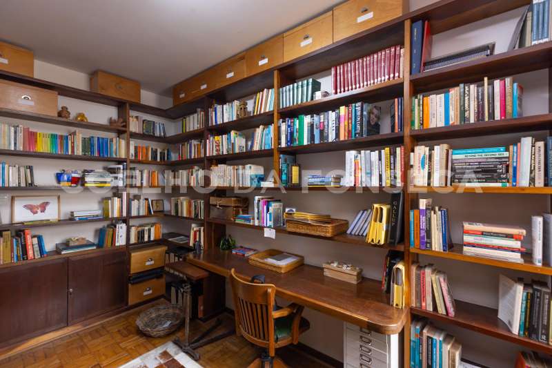 A ampla sala de estar, banhada por luz natural, apresenta uma excelente varanda, criando um ambiente perfeito para momentos de descontração. A área de jantar, integrada de forma harmoniosa, complementa o espaço social. A antiga sala de almoço foi convertida em um amplo escritório, podendo ser adaptada como um quarto adicional, evidenciando a versatilidade do imóvel.\r