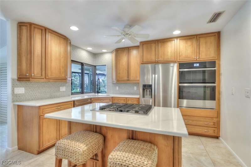 his fantastic 3-bedroom, 3-bath home offers spacious living, stylish updates, and a view that never gets old. Overlooking the 14th fairways of Beachview Country Club Estates, the home features a new 2022 roof, all-impact windows and doors, and an oversized screened pool lanai perfect for entertaining or relaxing. Inside, you'll find an updated kitchen with gas range, an eat-in layout, and a cozy gas fireplace - ideal for cool island evenings. The primary suite boasts a renovated bath with dual sinks and all closets throughout the home are custom by Closets by Design with storage. A curated landscaping design gives lush vibrant curb appeal. Recent ownership changes to the Sanibel Island Golf Club, golf course promises exciting upgrades to the club and course, restaurant - a timely investment opportunity for future homeowners. Being sold furnished this island gem is just a half-mile walk to the beach with deeded access and a short stroll to local restaurants. Ideal for a winter retreat or full-time residence, complete with a 2-car garage and prime central Sanibel location.