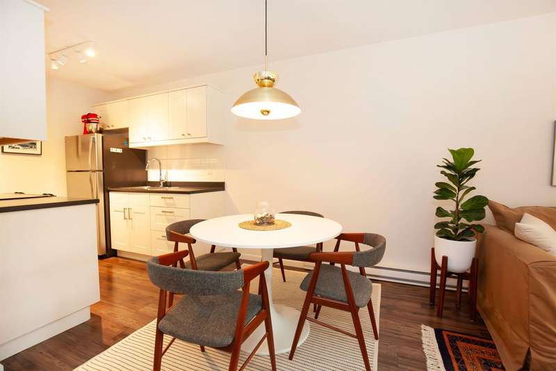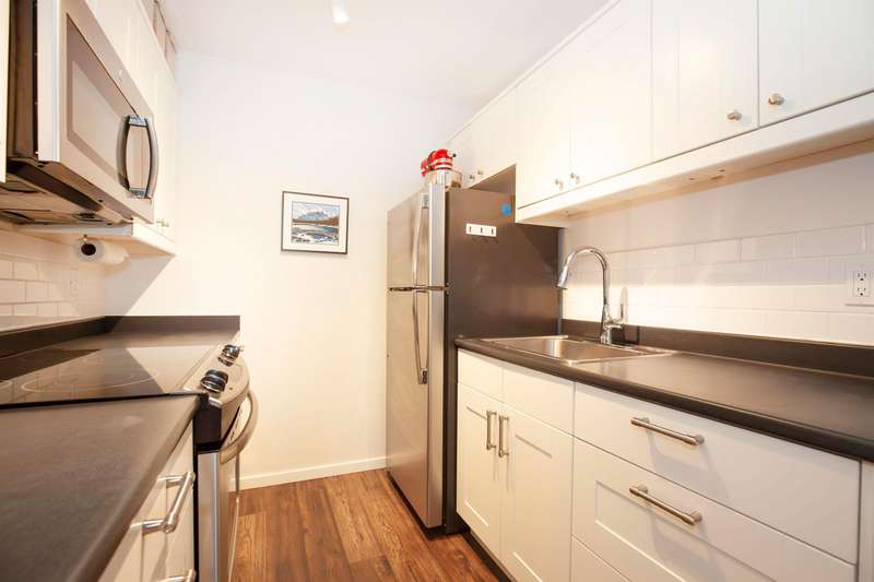 This beautifully renovated 1 bedroom condo sits on a quiet tree-lined street and has a smart layout with no wasted space. Top floor and south facing with brand new double pane windows that let in lots of natural light and has a large, covered balcony. Pet friendly building, with one dog or two cats allowed. 1 parking 1 storage. Well maintained building with recent upgrades including all windows and patio doors, new roof and common areas updated throughout, and exterior of building painted. Fantastic location, walkable to some great restaurants, shops and parks. Open House Sun Oct 5 2-3pm