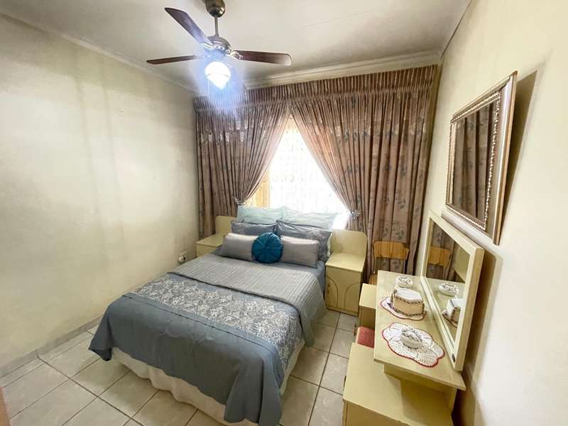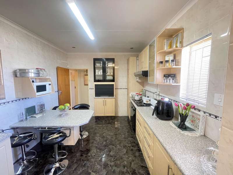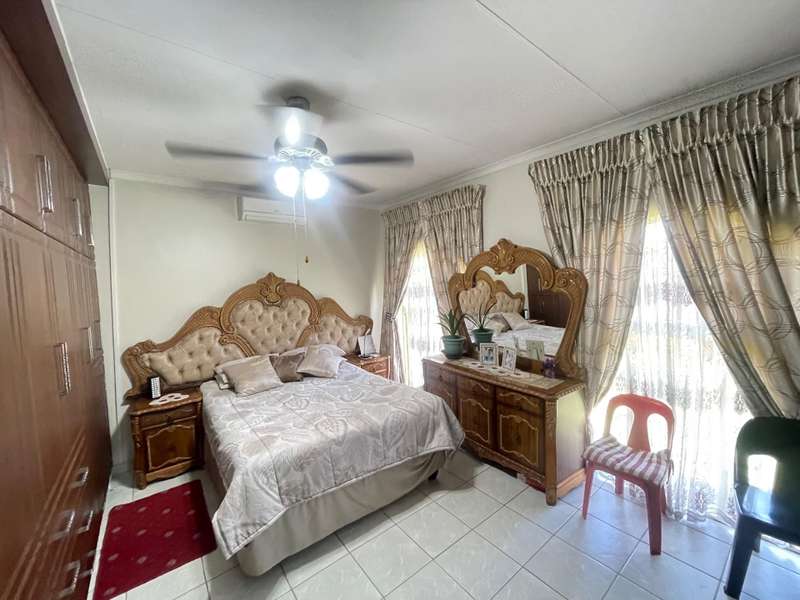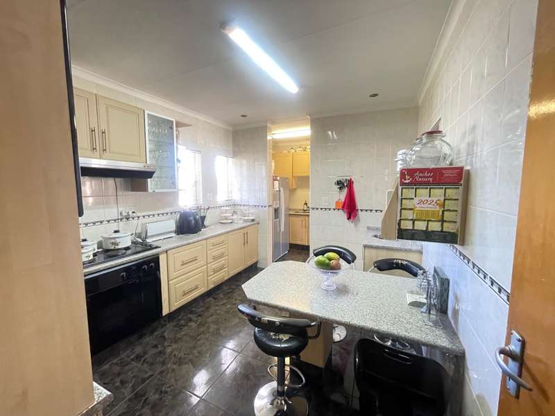 Nestled in a quiet and serene neighborhood, this well-maintained 3-bedroom home offers comfort, convenience, and security. The property features 1.5 bathrooms, a spacious lounge, dining room, and TV room, perfect for family living and entertaining. The fitted kitchen comes with a separate scullery, providing ample storage and workspace. All bedrooms have built-in cupboards, while the main bedroom boasts an air conditioning unit for added comfort. For parking, the home offers a garage and double covered carport. Security is a priority with an alarm system and an electric gate, ensuring peace of mind. This inviting home is ideal for families seeking a tranquil lifestyle with modern conveniences. Contact us today to arrange a viewing!