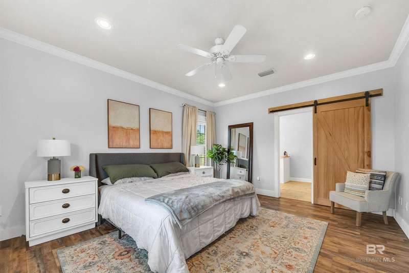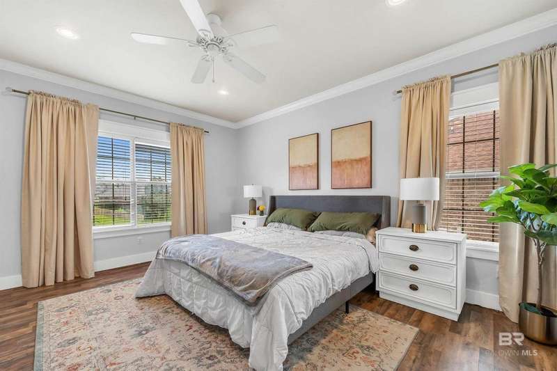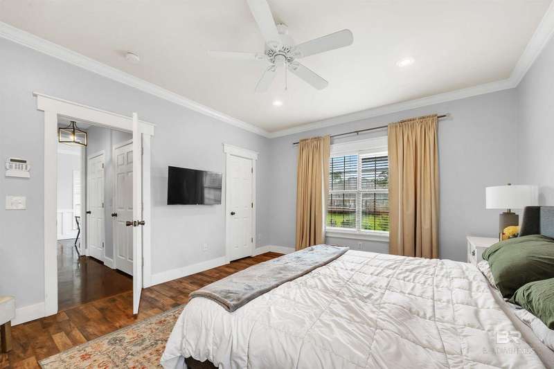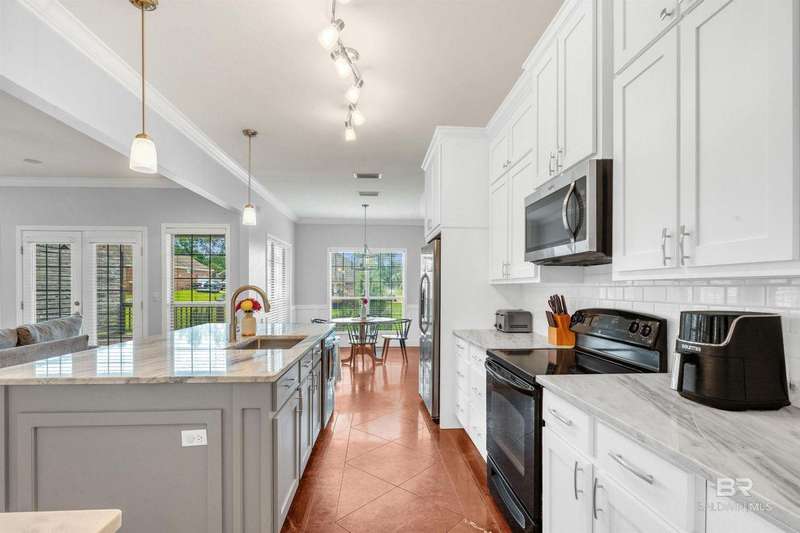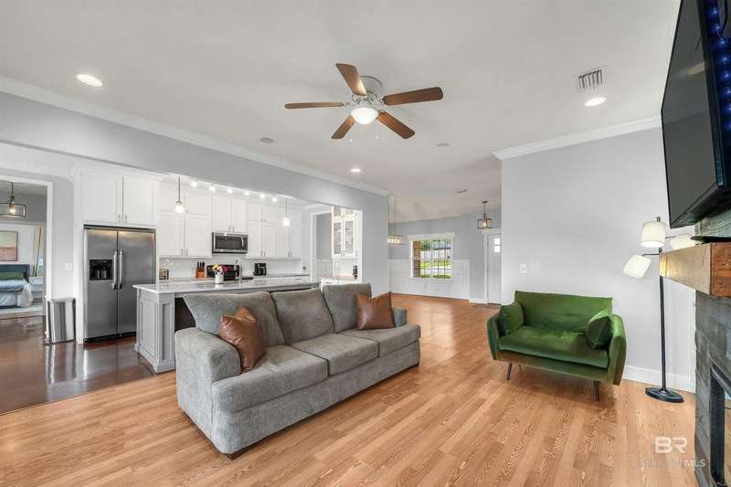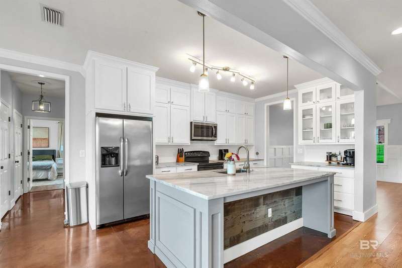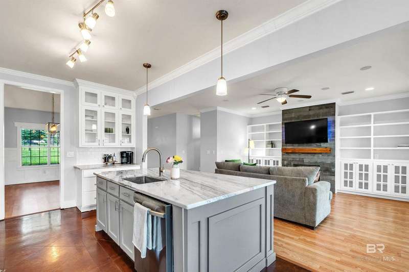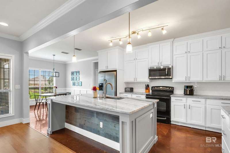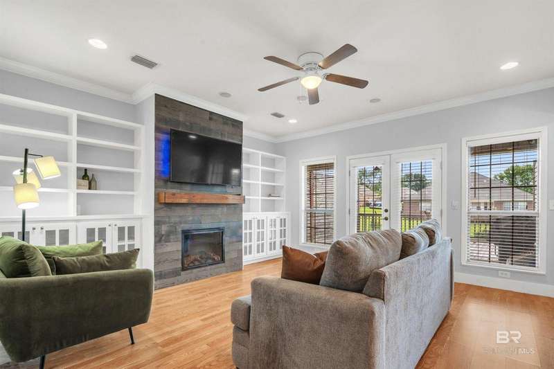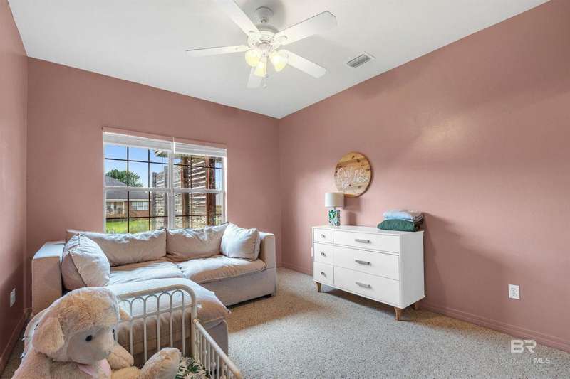 Welcome to this incredible upgraded home in the sought-after Lakeland subdivision, where lakeside charm meets everyday convenience. This home features thoughtful details throughout, including custom built-in cabinets flanking a cozy shiplap-accented fireplace, crown molding, 6 baseboards, beautiful wall trim design, and ceiling light fixtures that add a designer touch. The heart of the home is the spacious kitchen, complete with a large island, marble countertops, tile backsplash, updated lighting, and plenty of storage?perfect for everyday living and entertaining alike. The open-concept floor plan offers a natural flow between living, dining, and kitchen spaces, with stylish accents throughout. The primary suite offers comfort and privacy with a generous layout, walk in closet and en-suite bath, with garden tub, zero-entry shower and private toilet room. Additional bedrooms provide flexibility for family and guests. The upstairs bonus room has the space for a home gym, office, or even another bedroom. Step outside to enjoy the fully privacy-fenced backyard, and large deck with privacy wall. Recent updates to the home include a new roof in 2021, new outdoor paint, plus a new Carrier Infinity HVAC system in 2024 (valued at 20k) that lowered energy costs about $200/mo! SELLER TO CONTRIBUTE $2,000 TOWARD BUYER'S CHOICE OF HOME-RELATED EXPENSES. The Lakeland community offers a neighborhood pool, private lake, walking trails, and a fishing dock, all for a low monthly HOA fee. Ideally located near I-10 with easy access to the Eastern Shore and Gulf Coast, this home offers the perfect balance of comfort, style, and convenience. Buyer to verify all information during due diligence.