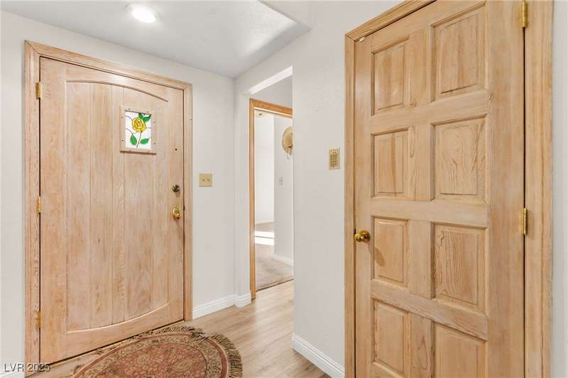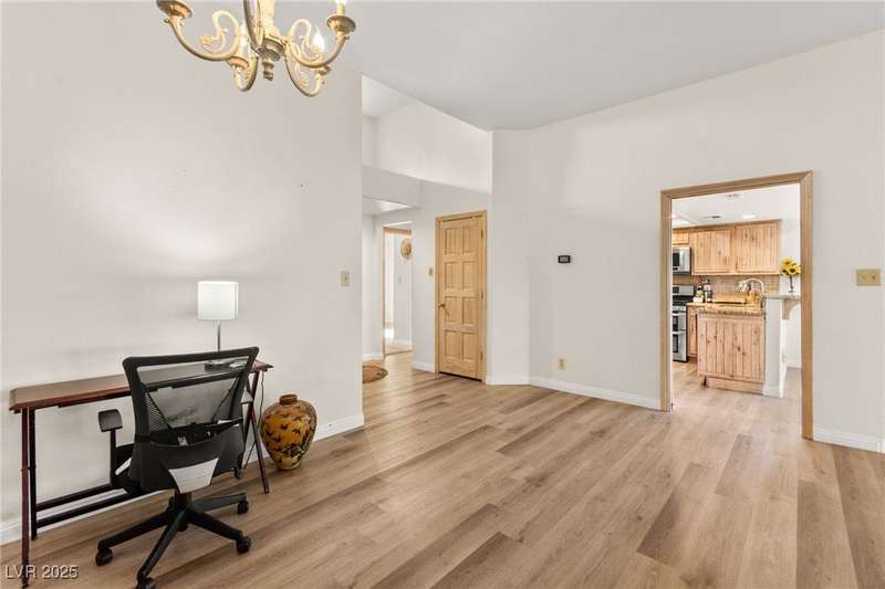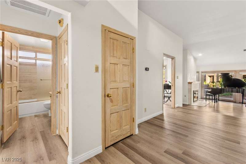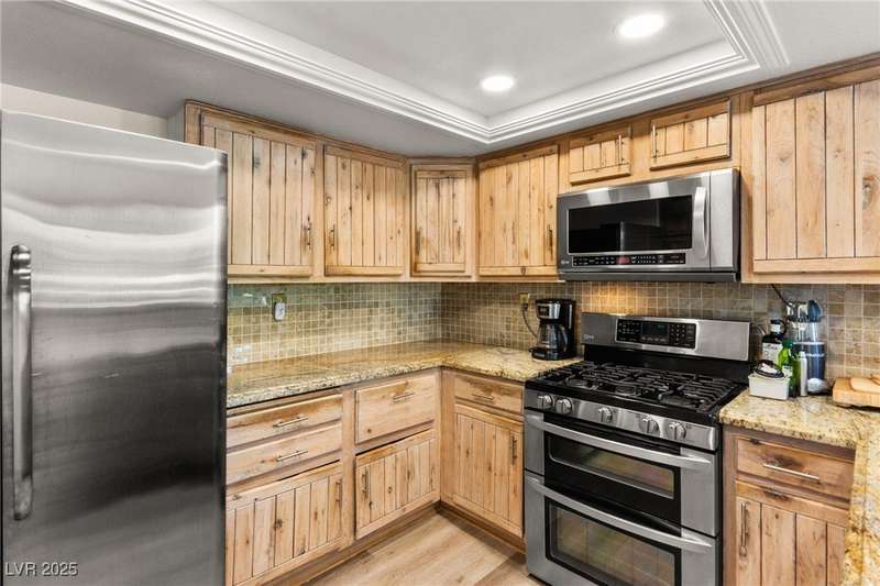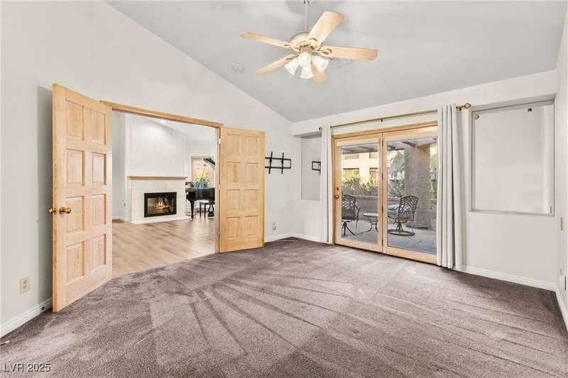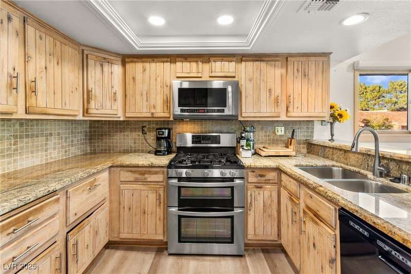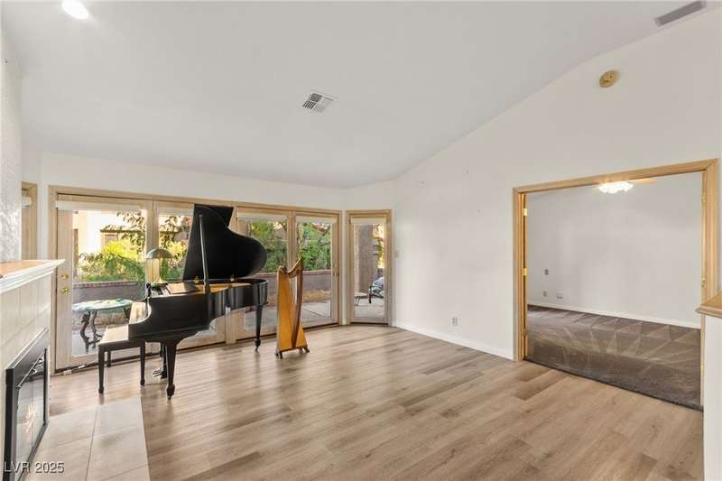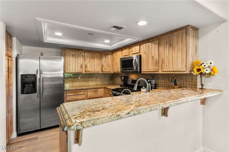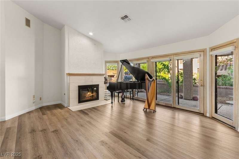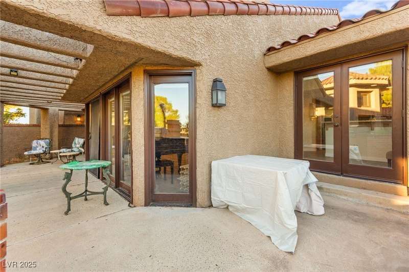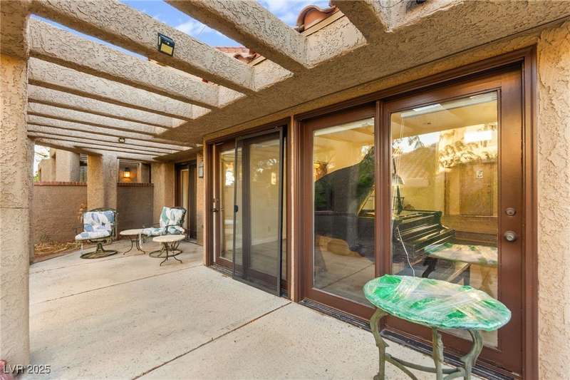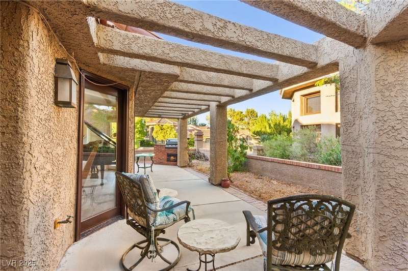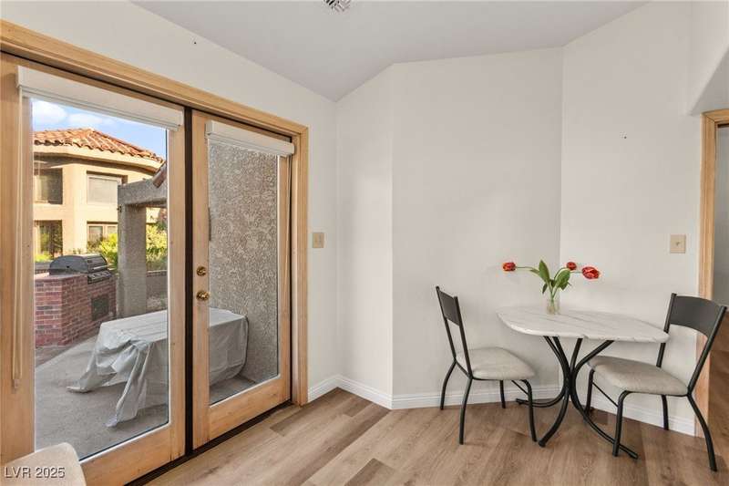 Nestled within the prestigious guard-gated Spanish Trail community, this charming single-story end-unit townhome offers comfort, privacy, and timeless elegance. Featuring 2 spacious bedrooms and 2 full bathrooms, the open-concept layout welcomes you with abundant natural light and wood laminate flooring in the living areas, creating a warm and inviting atmosphere throughout. The kitchen boasts stainless steel appliances, ample counter space, and a seamless flow into the dining and living spaces—perfect for entertaining or relaxing at home. Step outside to your private backyard retreat, complete with a built-in BBQ, ideal for enjoying Las Vegas evenings outdoors. Located in one of the city’s most sought-after communities, residents enjoy lush landscaping, sparkling pools, tennis courts, fitness facilities, and 24-hour security. Conveniently close to shopping, dining, and major freeways, this move-in ready home embodies resort-style living in Spanish Trail.