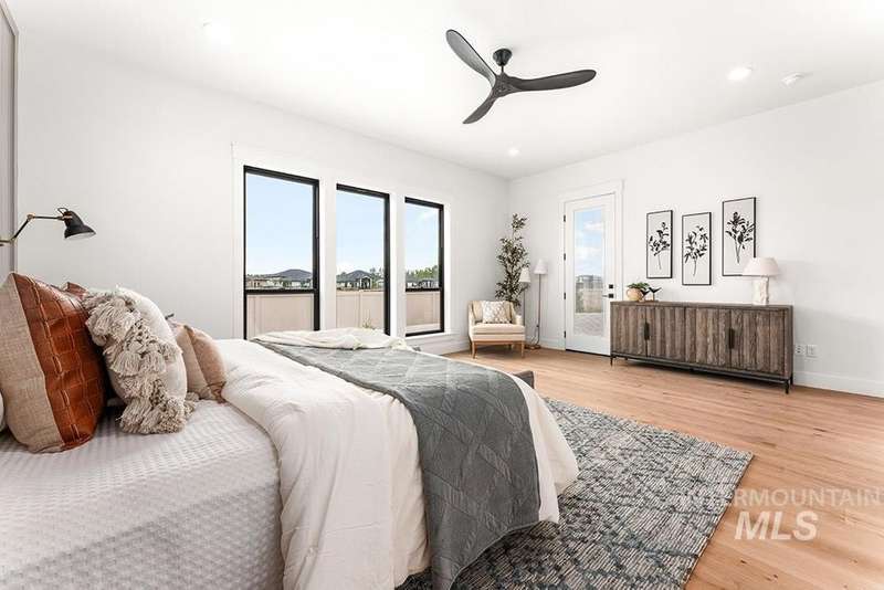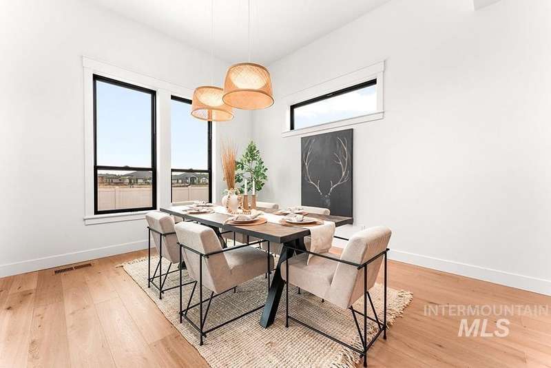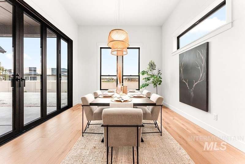 A stunning newly completed home by Iron Oak! Nestled in the brand-new Centerra community, residents enjoy the sought-after Eagle lifestyle complete with a community pool. This thoughtfully designed single-level home offers a small RV/boat bay plus an upper-level bonus room, creating the perfect layout for everyday living. Inside, the spacious open floorplan highlights a wall of sliding doors that extend the living space onto the patio. The gourmet chef’s kitchen boasts an oversized quartz island, two-toned cabinetry, a premier stainless-steel appliance package, and a generous walk-in pantry. The main-level master suite features private patio access and a luxurious en suite retreat with a soaking tub, a beautifully tiled walk-in shower, and an expansive dressing room. The flexible 4th bedroom can serve as a home office, while the upper-level bonus room provides plenty of room to spread out, ideal for a game room, gym, or lounge.
