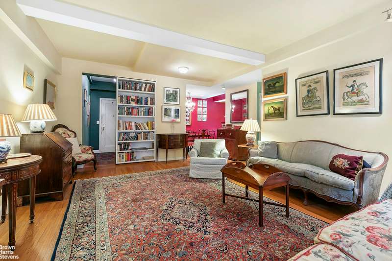 The apartment features a capacious living room, 2 large bedrooms (or master bedroom and library) with bath, all with open south views across East 57th Street -- suffused with ample warm southern light. The apartment would benefit from some renovation -- the existing layout allows optimum flexibility in modifying the original floor plan, particularly in the rear rooms: kitchen, staffroom (now office) dining area, half bath, hall way.