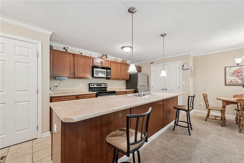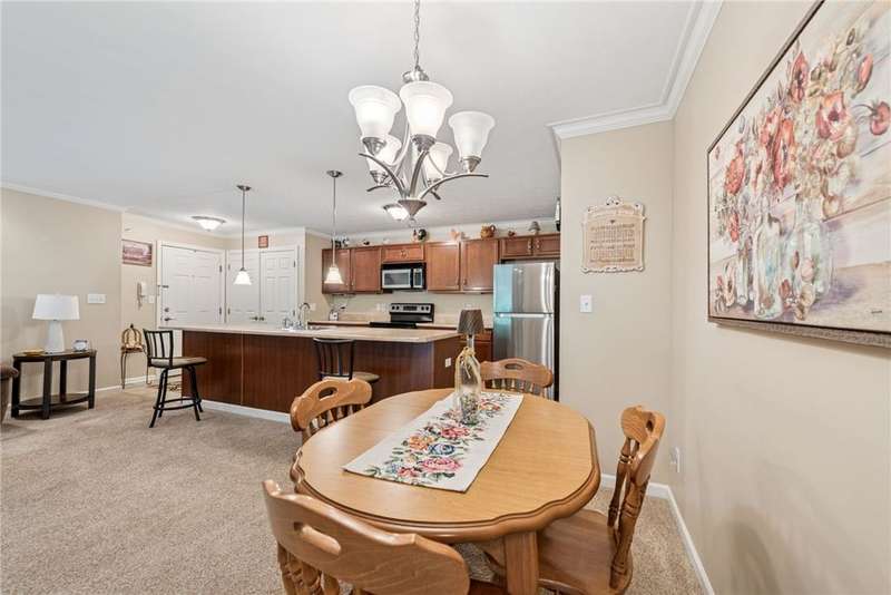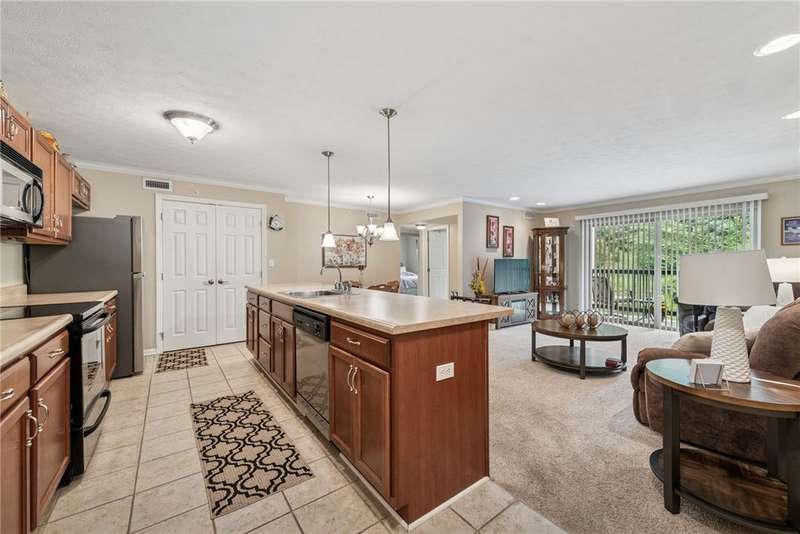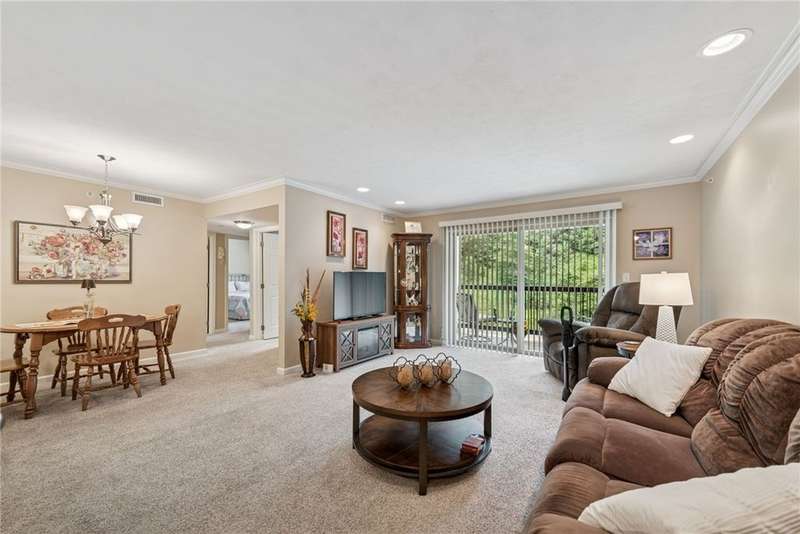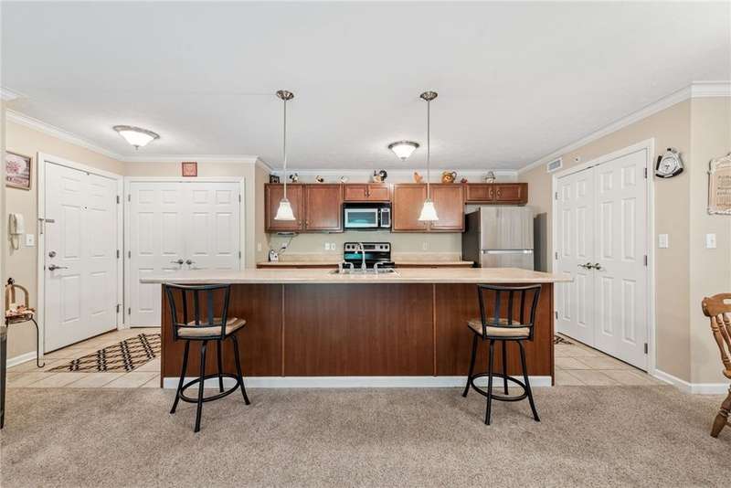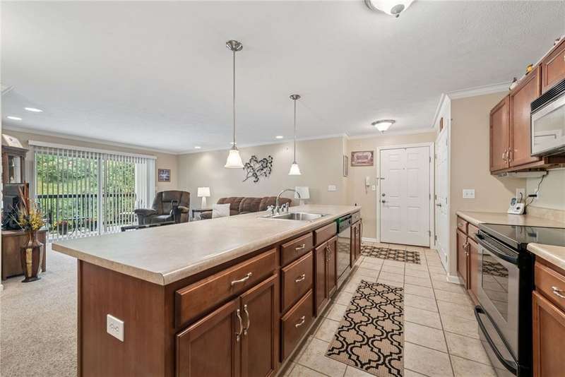 Enjoy one-level living in this spacious and well maintained 2 BR/2 BA condo in elevator building. Third-floor unit offers open-concept layout featuring large kitchen island, pantry, coat closet, and private balcony. Primary bedroom includes walk-in closet, dressing area, and private bath with walk-in shower. Nicely sized second bedroom and full bath ideal for guests. Separate utility room with storage cabinet and newer washer and dryer. Additional locked storage closet on same floor as unit for convenient storage of seasonal items. Assigned parking space in integral heated garage and ample guest parking outside front door. Close to PA 22 and 66. Comfortable layout in secure, maintenance assisted and professionally maintained building.