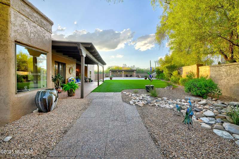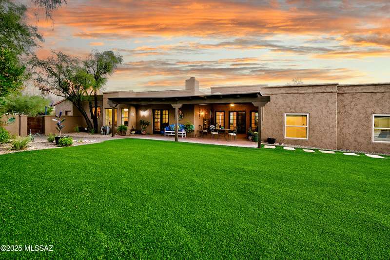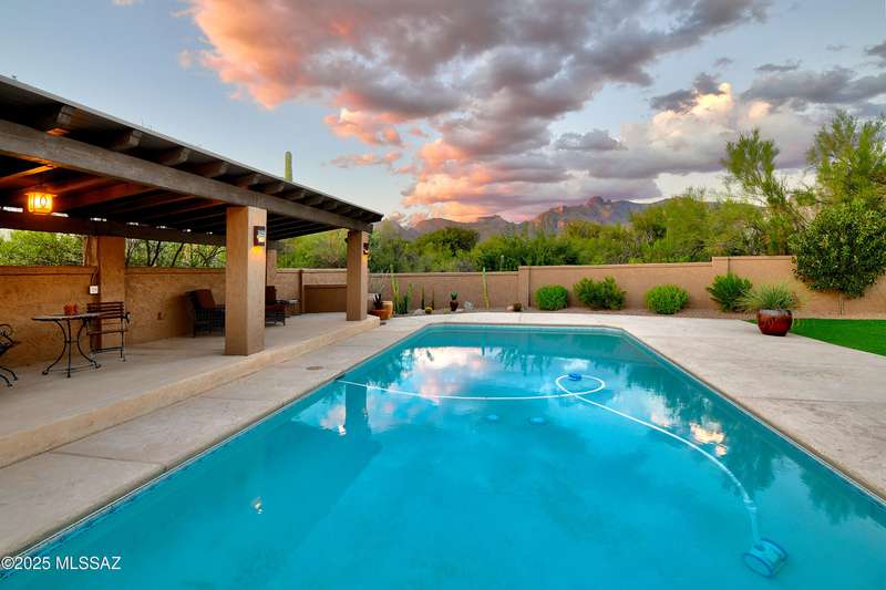 Tucked in a quiet Shadow Hills cul-de-sac, this beautifully updated designer home offers privacy, luxury, and timeless style. Step through a charming courtyard into soaring 12-ft ceilings, slate and engineered wood floors, and a grand living room with decorative fireplace. The chef's kitchen boasts stainless steel appliances, custom cabinetry and a sunny breakfast nook flowing into a spacious greatroom. French doors lead to the resort-style backyard featuring a phenomenal sparkling pool, ramada, covered patio, gorgeous turf area, and breathtaking views. The elegant primary suite includes a sitting area, stunning shower, walk-in closet and has double doors into the 4th bedroom-ideal for an office/nursery/study. This timeless desert oasis in a premier foothills location is waiting for you.