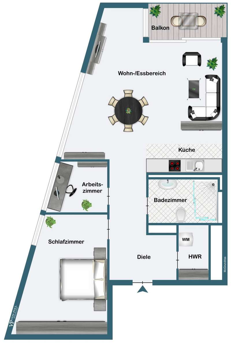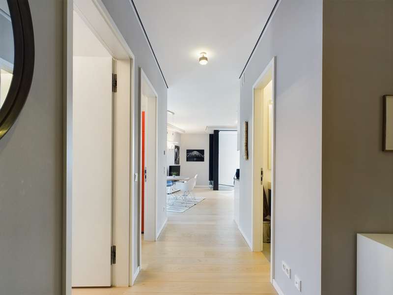 This luxurious apartment is located in Flare Living next to the Thurn-und-Taxis-Palais, which was completed in 2018 and thus offers the highest level of comfort and meets the latest technical standards. With a living space of over 70 square meters spread over 2.5 rooms, the apartment offers enough space for comfortable and urban living. The highlight of the apartment is the large living/dining area with an open-plan kitchen and access to the balcony, which invites you to relax. The high-quality furnishings are evident in every detail. Real wood parquet flooring gives the rooms a warm and cozy atmosphere. The open fitted kitchen is not only functional, but also aesthetically pleasing. The large bedroom is equipped with a high-quality built-in wardrobe. The beautiful study offers the ideal space for modern working from home. A utility room provides additional storage space and tidiness. Overall, the modern architecture and well thought-out room layout contribute to the feel-good factor of this apartment. Flare Living is an exclusive residential complex that offers the highest level of living comfort. Ideal for singles and young couples who are looking for something special and value quality.
