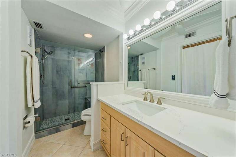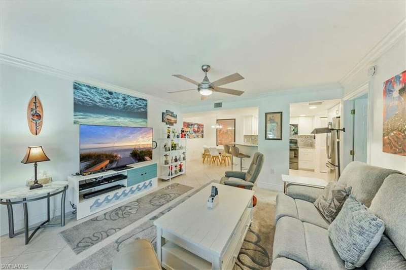 LOCATION, LOCATION! Close to FGCU, Coconut Point Mall, Miromar Outlets & Airport! This beautifully remodeled 2-bedroom, 2-bathroom END UNIT, located on the first floor, is sure to impress from the moment you arrive. The open-concept kitchen features a breakfast bar, granite countertops, and newer appliances. The spacious, flowing floor plan, with tile flooring throughout, is perfect for entertaining. Special touches include crown molding, remodeled walk-in showers with elegant tile walls and built-in benches (with handicap bars), new commodes, and granite vanities with sinks. The home also boasts new ceiling fans throughout, as well as newly replaced lanai screens. Storage is abundant with walk-in closets in both bedrooms, and a newer washer and dryer are included. Additionally, the electrical circuit breaker box was updated in 2021, and the water heater is approximately 4 years old. The A/C compressor is also about 3 years old. To enhance comfort, the seller has installed window and slider tinting to reduce sun glare. Relax and unwind on the spacious lanai with your favorite beverage. Fountain Lakes offers a wealth of amenities, including a 9-hole golf course, pickleball, tennis, a fitness center, a playground, a billiards room, a picnic area with grills, and a swimming pool. Plus, there's an additional pool at The Greens. What more could you ask for? Two pets are allowed with approval.