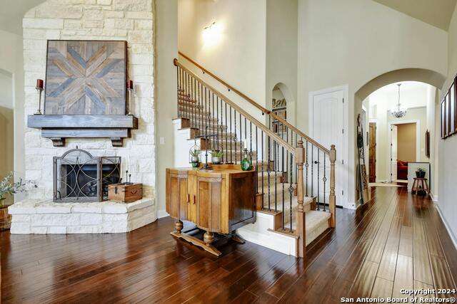 Welcome to your dream home! This beautiful, well-appointed, and spacious residence features a thoughtful layout that perfectly accommodates modern living. Situated on a serene corner lot in the vibrant city of Schertz, this Gehan-built gem boasts a captivating stone fireplace, creating a warm and inviting atmosphere in the heart of the home. With three generous bedrooms on the main floor, including a luxurious primary suite designed for ultimate relaxation, this home offers a separate office ideal for remote work or study, as well as a second living area. The upper level retreat includes a private bedroom suite with its own bathroom, making it perfect for guests or older children, along with a walk-out attic providing ample storage space to keep your home organized and clutter-free. Step outside to your covered back patio, an ideal spot for morning coffee or evening relaxation, surrounded by a beautifully manicured lawn and inviting yard that adds to your outdoor enjoyment. Don't miss the opportunity to make this lovely home your own and experience the charm and convenience of living in Schertz, where comfort meets community!