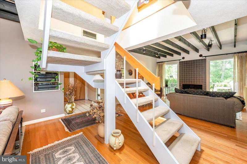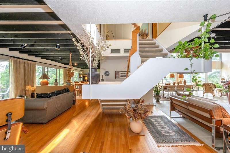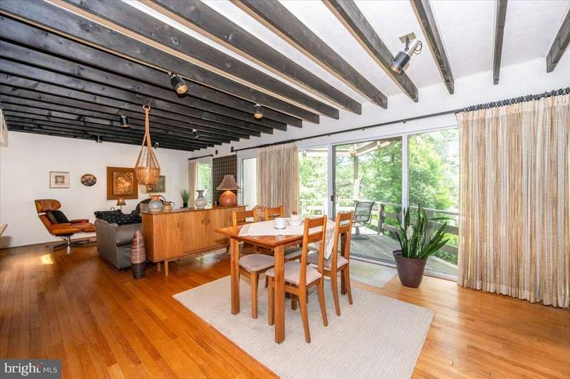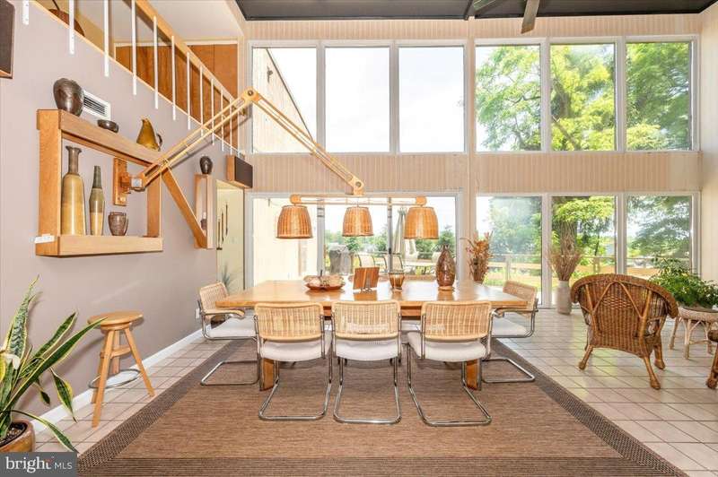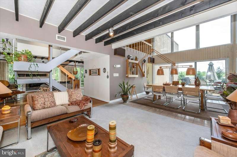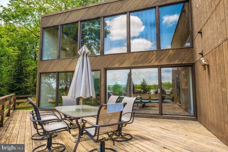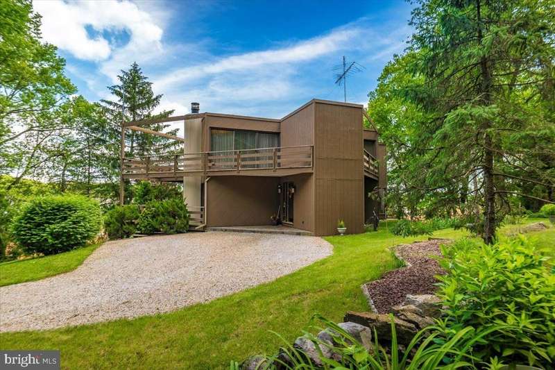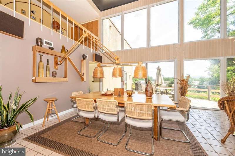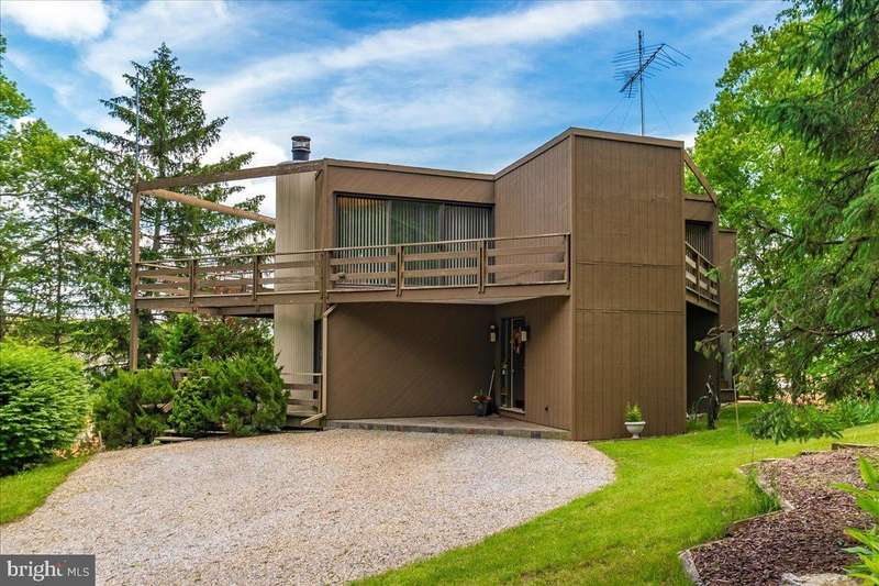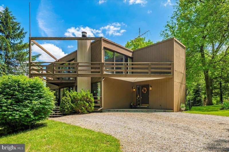 Spectacular Midcentury Modern home with all of the original fixtures and detail intact! Private bucolic setting just minutes from the center of town- all of the convenience without the city taxes! Many details that you will appreciate include: walls of glass, most rooms open to decks or balconies, hand crafted lighting fixture in the 2-story Great Room custom made for the house, large primary suite with 2 walls of glass, private deck, huge bath and closet/dressing area, second floor laundry, second floor landing area large enough for reading/homework/relaxing and which overlooks the 2-story great room; 2 additional bedrooms with shared bath complete the second floor design. While you will want to keep all of the original kitchen and baths the home is ready for a refresh and the next generation who will love it as much as the original owners who raised their family here.
