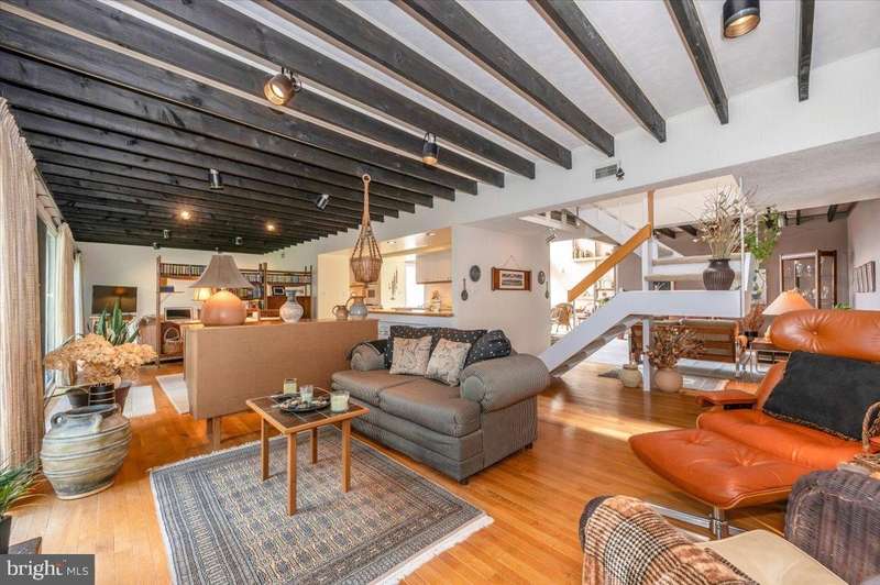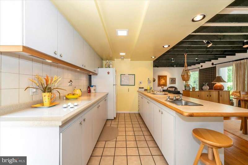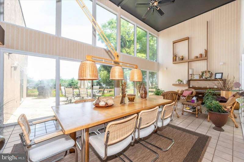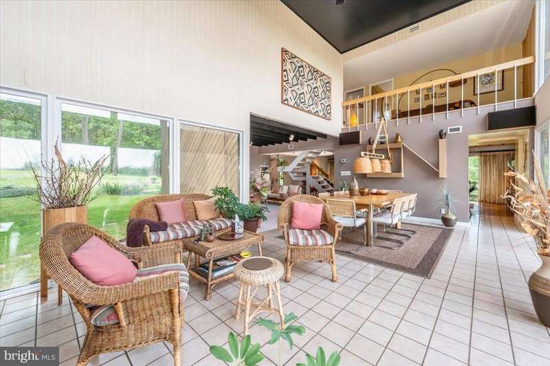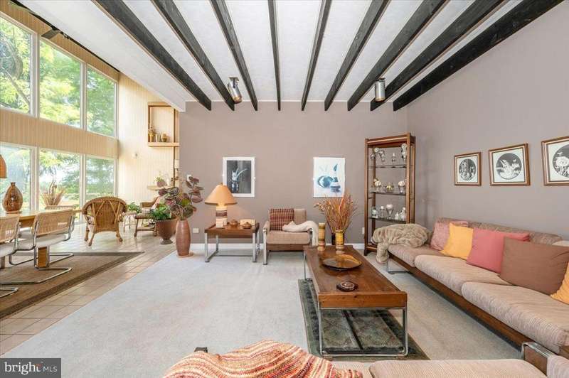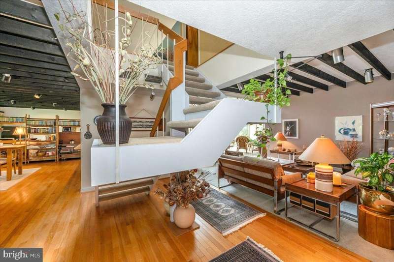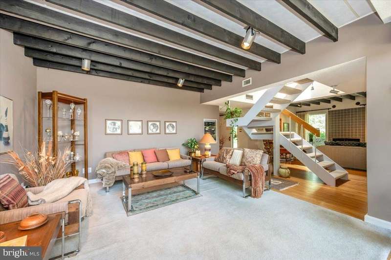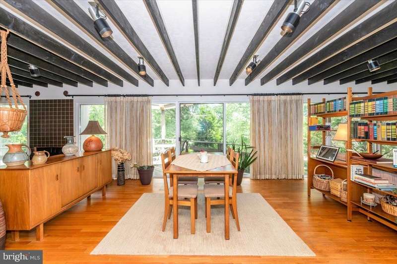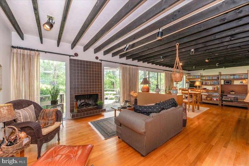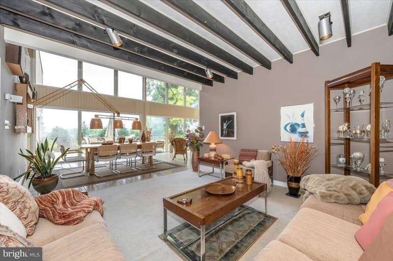 Spectacular Midcentury Modern home with all of the original fixtures and detail intact! Private bucolic setting just minutes from the center of town- all of the convenience without the city taxes! Many details that you will appreciate include: walls of glass, most rooms open to decks or balconies, hand crafted lighting fixture in the 2-story Great Room custom made for the house, large primary suite with 2 walls of glass, private deck, huge bath and closet/dressing area, second floor laundry, second floor landing area large enough for reading/homework/relaxing and which overlooks the 2-story great room; 2 additional bedrooms with shared bath complete the second floor design. While you will want to keep all of the original kitchen and baths the home is ready for a refresh and the next generation who will love it as much as the original owners who raised their family here.