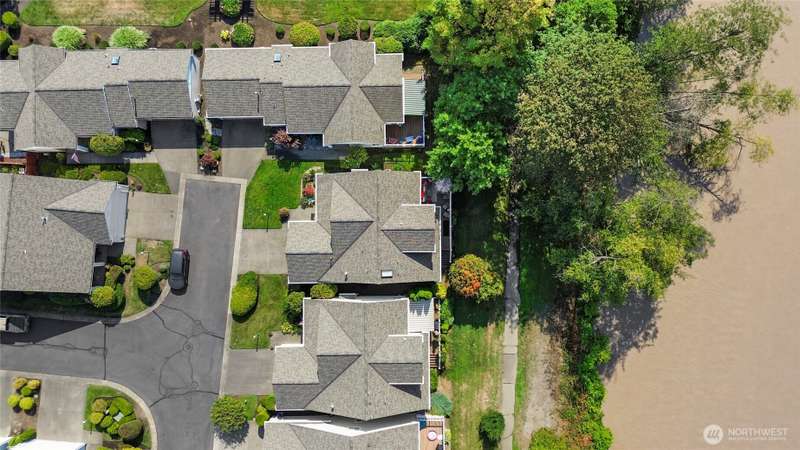 Located in the desirable Riverwalk community, this home backs to the river with stunning river & Mt views. Step from your Trex deck equipped with a motorized sunshade onto miles of riverfront walking. Inside you’ll find vaulted ceilings, skylights, an open loft, LVP flooring & a dining room. The remodeled kitchen showcases quartz counters, soft close cabinets, graphite appliances, extensive tile backsplash & a 5-burner gas stove. Additional highlights include formal living room w/gas fireplace, French doors, walk-in closet, bath off the primary, main floor bedroom, bonus area used as an office & efficient HVAC to stay cool. HOA dues cover lawn service & flood insurance—giving you more time to enjoy the riverfront lifestyle.