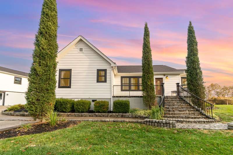 Unique Fort Wright home for lease! 3 bedroom/2 full bathroom raised ranch on 4.2 acres of privacy, minutes from the city! The exterior of this home features beautiful fluted stone stairs to large front porch with ornate iron railings and a covered rear porch overlooking wooded backyard. The interior features refinished hardwood flooring throughout with large living spaces. Primary bedroom features ensuite bathroom with walk in closet. Unfinished lower level perfect for storage. Newer roof, windows, and central AC. Schedule your private showing today!