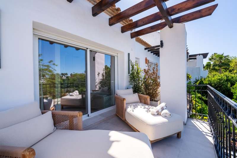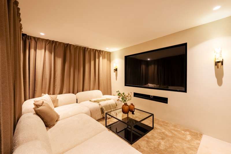 Nestled in the heart of Marbella’s iconic Golden Mile, this beautifully designed 5-bedroom, 5-bathroom townhouse blends modern Scandinavian minimalism with timeless Mediterranean allure. Spanning four levels, this exquisite home offers expansive south-facing terraces with panoramic sea views and refined indoor-outdoor living. The open-concept main floor features a sleek Miele kitchen and spacious living area framed by bi-folding glass doors, effortlessly extending into multiple alfresco lounge and dining spaces. Designed for luxury and comfort, the home includes a private cinema, fully equipped gym, sauna, and an outdoor jacuzzi—perfect for relaxing in style. Two tranquil primary suites each boast their own private terraces, while all bedrooms are generously proportioned with designer finishes. Underfloor heating in the bathrooms and smart home technology add modern convenience to every corner. Secure gated entry, a private garage, and access to a lush communal pool enhance the expe