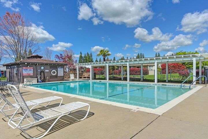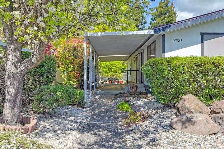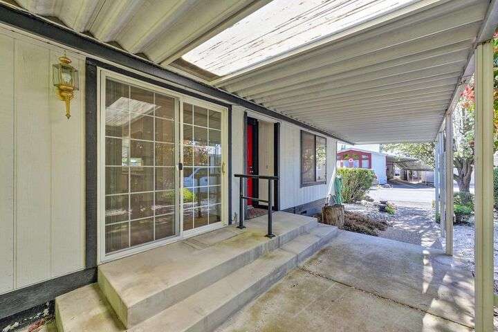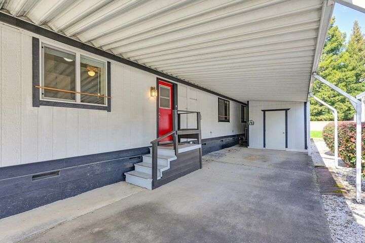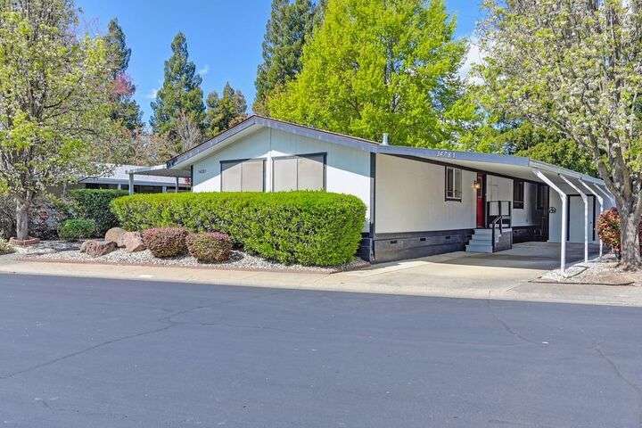 Welcome to this beautifully maintained manufactured home in the highly desirable Rancho Murieta Village 55+ Community! Situated on a permanent foundation with no space rent, this home offers both comfort and convenience. Inside, you'll find a spacious, open floor plan with vaulted ceilings throughout. The bright and airy living room flows seamlessly into the dining area, which features a built-in cabinet spanning the length of the room for ample storage. Adjacent to the galley-style kitchen is an additional dining or living space, perfect for your needs. The primary bedroom has vaulted ceilings and a large mirrored closet, making it feel spacious. The ensuite bathroom includes a double sink vanity, a separate shower, and a relaxing tub. An additional bedroom and full bath complete this charming home. Outside, enjoy the covered front patio, perfect for relaxing as well as a covered carport and a convenient storage shed for extra space. This community boasts plenty of options for social events, clubs, and activities with a beautiful clubhouse and pool for all to enjoy.