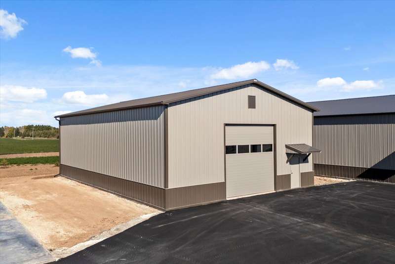 Brand NEW stand-alone, 2,400 sq ft building! Great for the hobbyist, storage, business, recreation, Man Cave/She Shed! Private and with no shared walls this building features insulation, dry-wall, heat/air-conditioning, floor drain, 200amp svc with 220 hook up, half bath, utility sink, 14'x14' garage door, 15' ceiling, overhead lighting, private holding tank. Seller can assist in further build-out needs. Close to I-43. Be part of this great, new development! Also for Lease, See MLS #1935449.