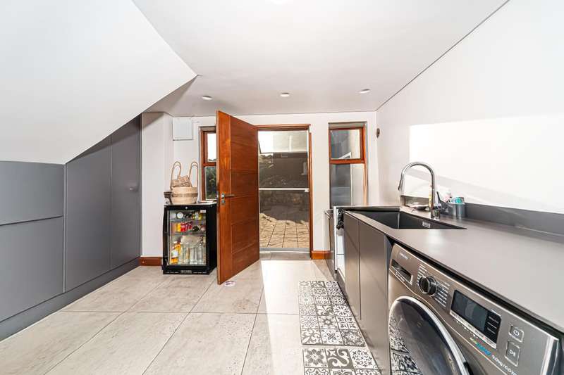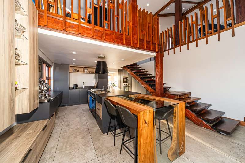 At the heart of the home lies a chef?ÇÖs dream kitchen, featuring Neolith countertops, Blum soft-close drawers, and a handcrafted Niemand River table as a bespoke breakfast nook. The kitchen is further enhanced by a scullery and pantry, ensuring both practicality and elegance.