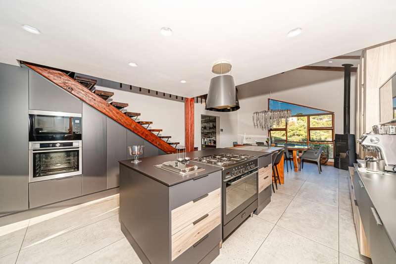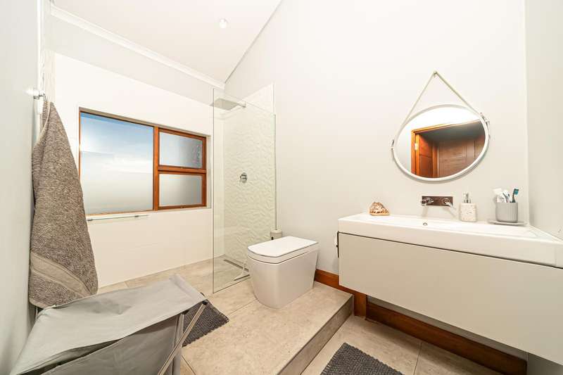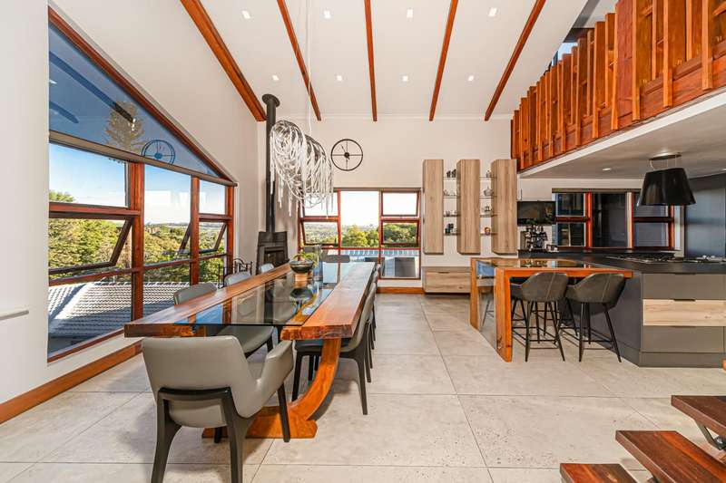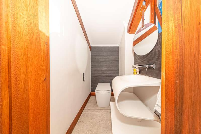 Accommodation includes three luxurious bedrooms and 2.5 impeccably designed bathrooms, each a serene retreat. Additionally, a fully self-contained cottage offers flexible living arrangements, perfect for guests or extended family. A four-car garage and staff accommodation complete this offering, ensuring ultimate convenience and comfort.