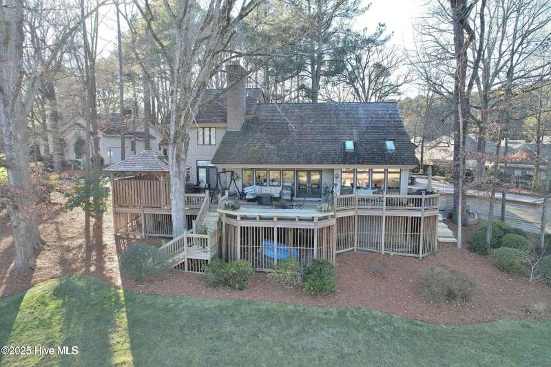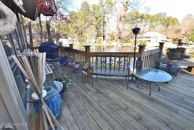 Your DREAM HOME awaits you located in a waterfront community on a large lot with an additional lot included! This remarkable property with 3-bedrooms, 2 1/2-bathrooms, and a 2-car garage offers a spacious layout, beautiful kitchen with granite countertops, Wolf gas range with hood, a large island, stainless steel appliances, and a beautiful dining area overlooking the water. Enjoy the inviting Family Room, complete with a fireplace, cathedral ceiling and custom built-in cabinetry. The primary bedroom on the main level offers a fireplace, his and her walk-in closets and a spacious bath with his/her vanities, whirlpool jetted soaking tub & walk in combo shower/steam room! Upstairs offers two additional bedrooms with bathroom and a large bonus room. Step outside to the lovely deck overlooking the beautiful lake. With more than 3,000 square feet of living space, this home is a true gem, offering comfort, style, and functionality in a lovely community with easy access to US 64 and I-95 for short commutes across the region. Don't miss the opportunity to make it yours!
