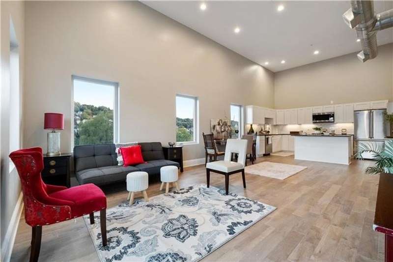 Welcome Industrial Commons, Lawrenceville's luxury condo development. Conveniently located to Butler Street, Children's Hospital, The Strip District, Downtown, Oakland and Shadyside. This 2 bedroom, 2 bathroom penthouse was designed to blend the mechanical features of loft living while offering high end modern features. Open floor plan, hardwood flooring, designer kitchen cabinets, large kitchen island, Viking appliances, ample closet space, high ceilings, and lots of natural throughout. Deeded parking space with each unit. Pet friendly building, 24- hour security system and 24-hour property management. Act 42 tax abatement available.