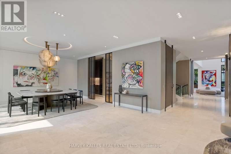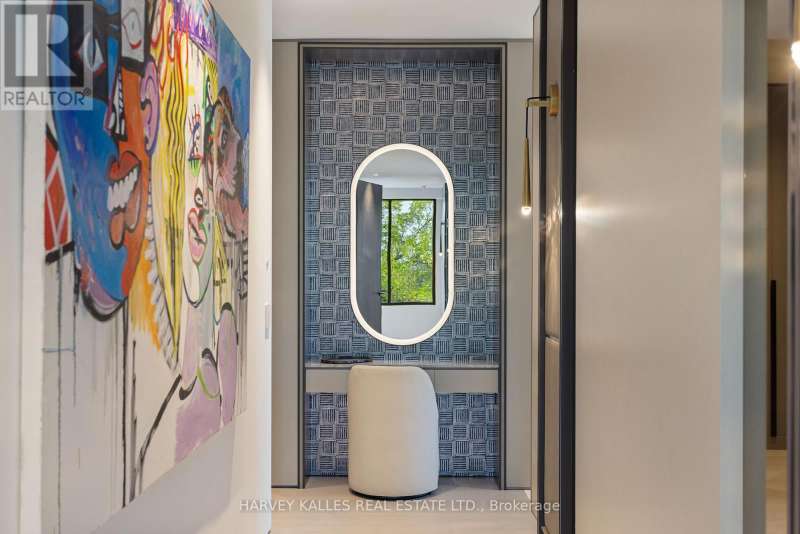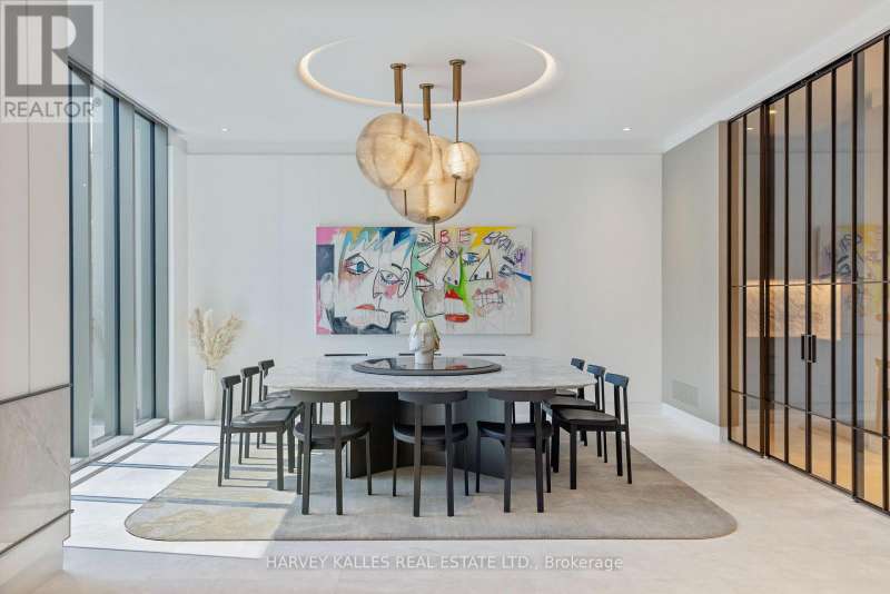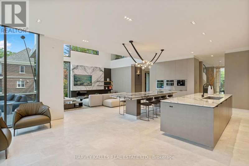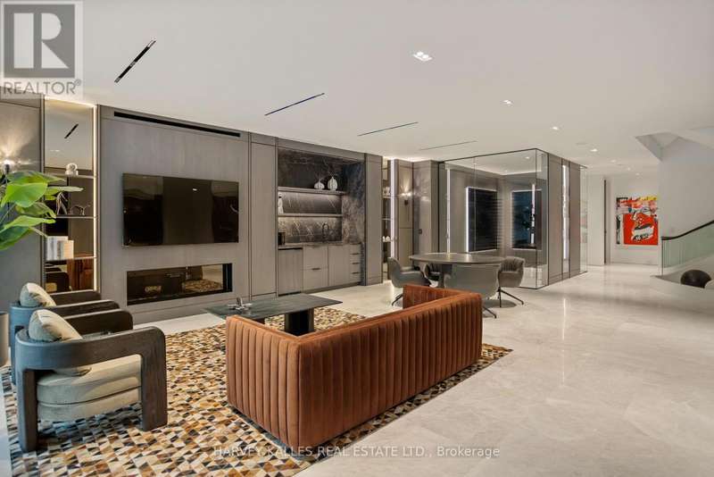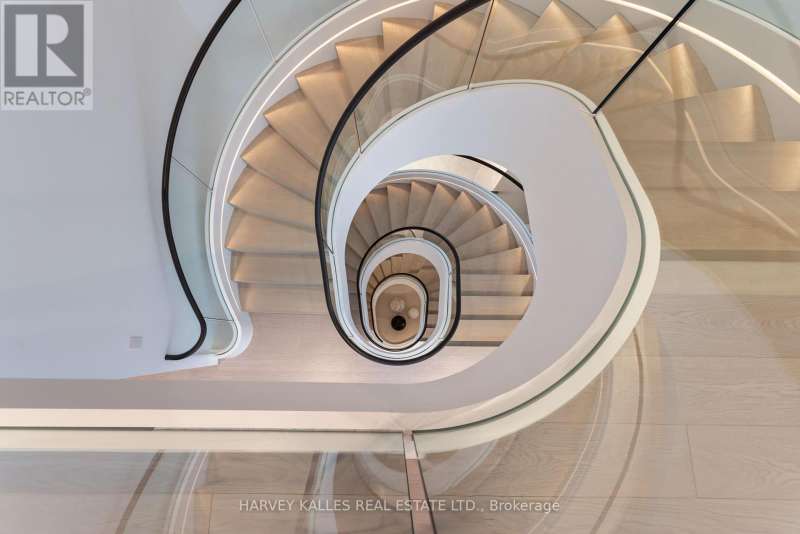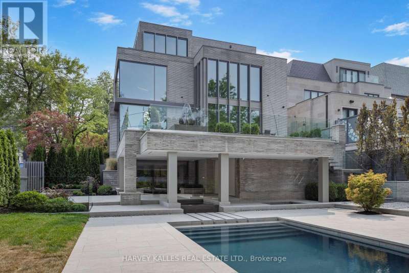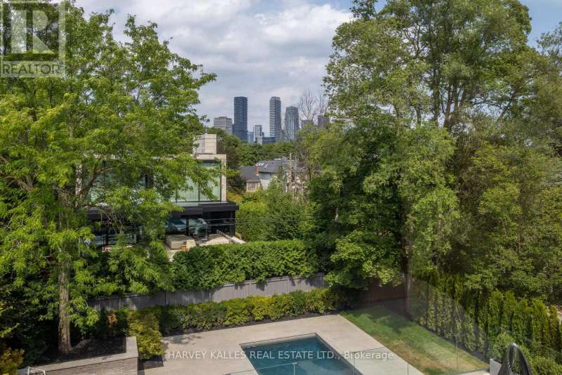 Welcome To 211 Dunvegan Rd, A Masterpiece Of Modern-Transitional Living Crafted By Omid Taba And Forest Range Developments. This Bespoke Residence Sits On A Generous Corner Lot, Offering 6,972 Sq. Ft. Above Ground Plus 2,884 Sq. Ft. In The Lower Level. Every Detail Reflects Precision, Innovation, And Refined Craftsmanship, Merging Architectural Drama With Timeless Elegance. From The Serene Gallery-Like Foyer, Sightlines Lead To The Dramatic Double-Height Family Room, Where Floor-To-Ceiling Glazing, Sculptural Lilac And Calacatta Viola Marble, And Custom Vertical Wood Panels Create An Atmosphere Both Bold And Inviting. A Seamless Flow Connects The Kitchen With Dual Marble-Topped Islands And Fully Integrated Sub-Zero, Wolf, And Miele Appliances To The Dining Area, Anchored By A 12-Seat Custom Marble Table Beneath Henges Superb All Chandelier. Additional Living Zones Include A Warm Living Room With Sky White Marble Fireplace, A Refined Study, And A Moody Lower-Level Lounge With Gym, Theatre, Bar, And Glass-Enclosed Cooled Wine Cellar. The Primary Suite Features A Suspended Fireplace, His-And-Hers Boutique Dressing Rooms, And A Spa-Like Ensuite With Cocoon Fixtures, Freestanding Tub, Steam Shower, And Heated Floors. Four Additional Bedroom Suites Plus Nannys Suite And A Third-Floor Sitting Area With Kitchenette Ensure Space And Privacy For Family And Guests. An Elevator Provides Access Across All Levels, While Radiant Heated Floors, Smart Home Automation, And Integrated Lighting And Climate Systems Offer Modern Comforts. Outdoors, A Walk-Out Terrace Features Covered BBQ, Dining And Lounge Seating Centered Around A Sculptural Firepit Above A Reflecting Water Basin With Cascading Water Into A Lower Pond. Beyond, A Resort-Style Pool And Jacuzzi With Lush Landscaping Create A Private Retreat For Relaxation And Entertainment. Artistry And Innovation Converge To Deliver A Residence Of Unparalleled Sophistication, Lifestyle, Comfort, And Timeless Design. (id:6370)
