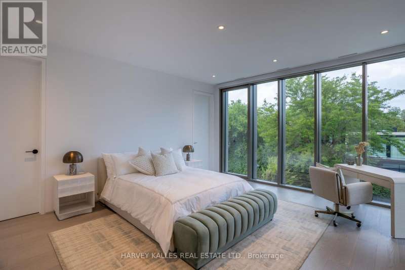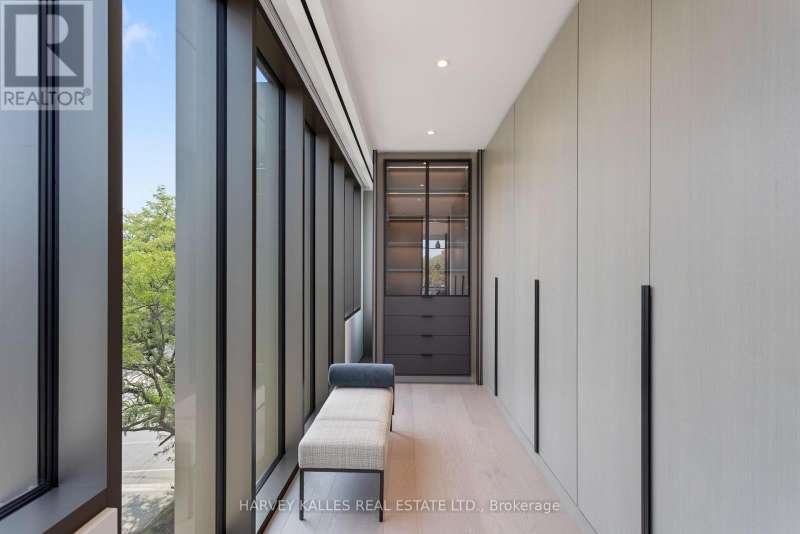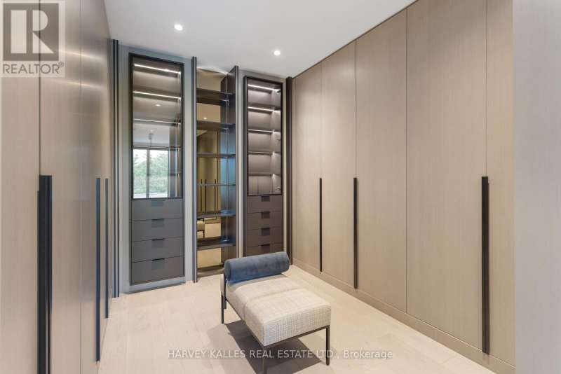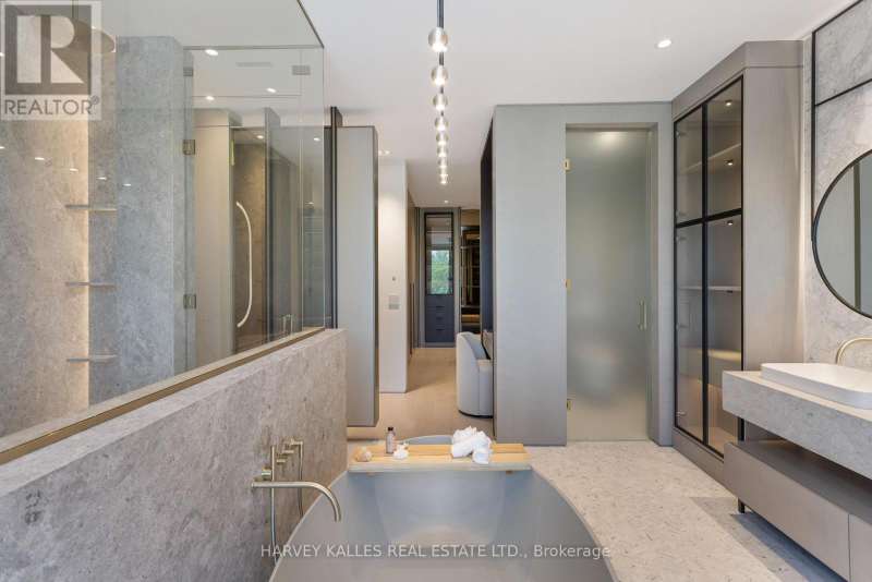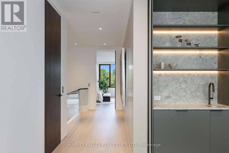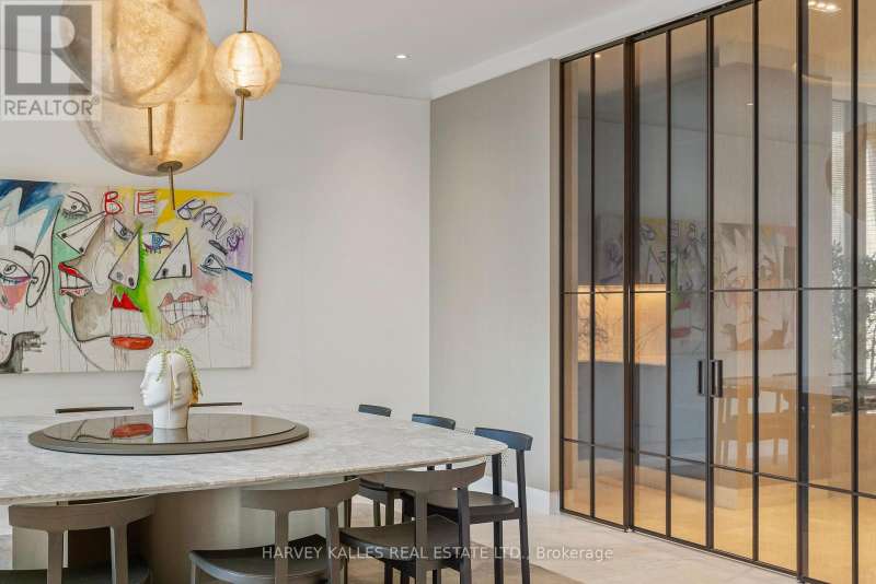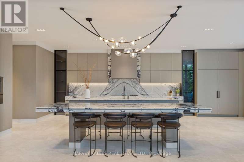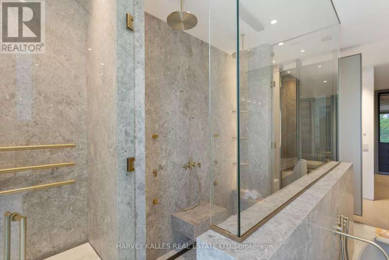 Welcome To 211 Dunvegan Rd, A Masterpiece Of Modern-Transitional Living Crafted By Omid Taba And Forest Range Developments. This Bespoke Residence Sits On A Generous Corner Lot, Offering 6,972 Sq. Ft. Above Ground Plus 2,884 Sq. Ft. In The Lower Level. Every Detail Reflects Precision, Innovation, And Refined Craftsmanship, Merging Architectural Drama With Timeless Elegance. From The Serene Gallery-Like Foyer, Sightlines Lead To The Dramatic Double-Height Family Room, Where Floor-To-Ceiling Glazing, Sculptural Lilac And Calacatta Viola Marble, And Custom Vertical Wood Panels Create An Atmosphere Both Bold And Inviting. A Seamless Flow Connects The Kitchen With Dual Marble-Topped Islands And Fully Integrated Sub-Zero, Wolf, And Miele Appliances To The Dining Area, Anchored By A 12-Seat Custom Marble Table Beneath Henges Superb All Chandelier. Additional Living Zones Include A Warm Living Room With Sky White Marble Fireplace, A Refined Study, And A Moody Lower-Level Lounge With Gym, Theatre, Bar, And Glass-Enclosed Cooled Wine Cellar. The Primary Suite Features A Suspended Fireplace, His-And-Hers Boutique Dressing Rooms, And A Spa-Like Ensuite With Cocoon Fixtures, Freestanding Tub, Steam Shower, And Heated Floors. Four Additional Bedroom Suites Plus Nannys Suite And A Third-Floor Sitting Area With Kitchenette Ensure Space And Privacy For Family And Guests. An Elevator Provides Access Across All Levels, While Radiant Heated Floors, Smart Home Automation, And Integrated Lighting And Climate Systems Offer Modern Comforts. Outdoors, A Walk-Out Terrace Features Covered BBQ, Dining And Lounge Seating Centered Around A Sculptural Firepit Above A Reflecting Water Basin With Cascading Water Into A Lower Pond. Beyond, A Resort-Style Pool And Jacuzzi With Lush Landscaping Create A Private Retreat For Relaxation And Entertainment. Artistry And Innovation Converge To Deliver A Residence Of Unparalleled Sophistication, Lifestyle, Comfort, And Timeless Design. (id:6370)