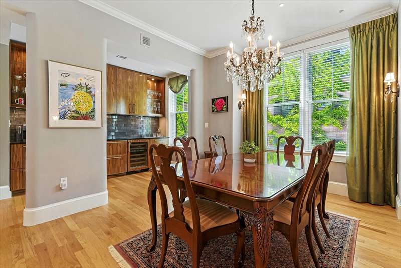 Nestled on one of the most picturesque streets in the South End this single-family townhome offers 2,240 SF of living across four thoughtfully laid out floors. Upon entry, you'll find a gracious foyer which leads seamlessly to a spacious kitchen/living/dining area curated with custom cabinetry, Viking gas range, Sub-Zero, wine storage, stone countertops all overlooking a private outdoor oasis with professionally landscaped bluestone patio & garden. The entire level has the added comfort of radiant heat and convenient powder room. Entertain or simply relax in the sophisticated sun-lit double living room w/high ceilings, stunning wet bar & gas fireplace. You'll find the second & third bedrooms generous in size with custom closets & built in storage. Luxurious primary suite with Back Bay views comprises the entire 4th floor. Addl features include updated windows HVAC, custom blinds & shutters, Sonos surround system, Coveted! 2 garage parking spaces. A true treasure of home & location!!
