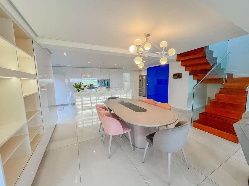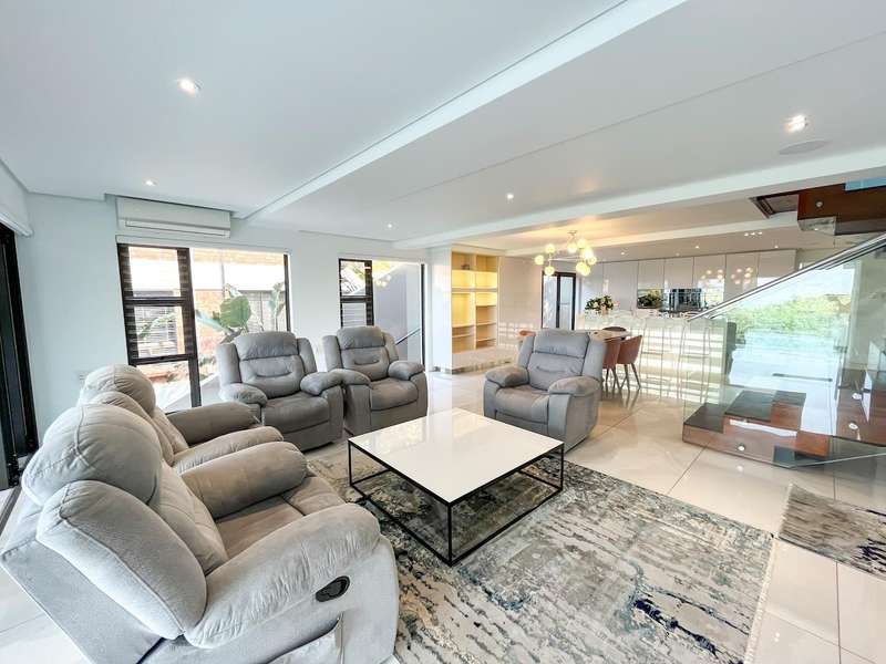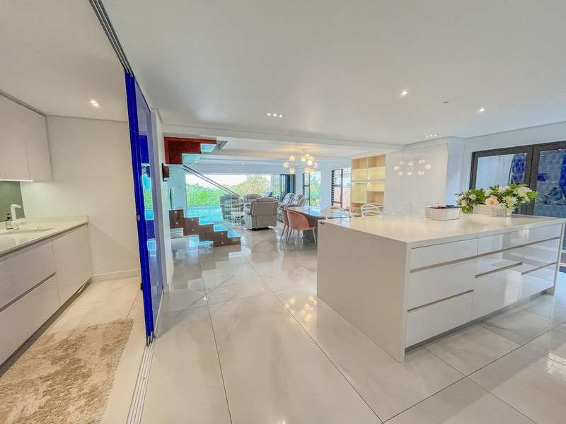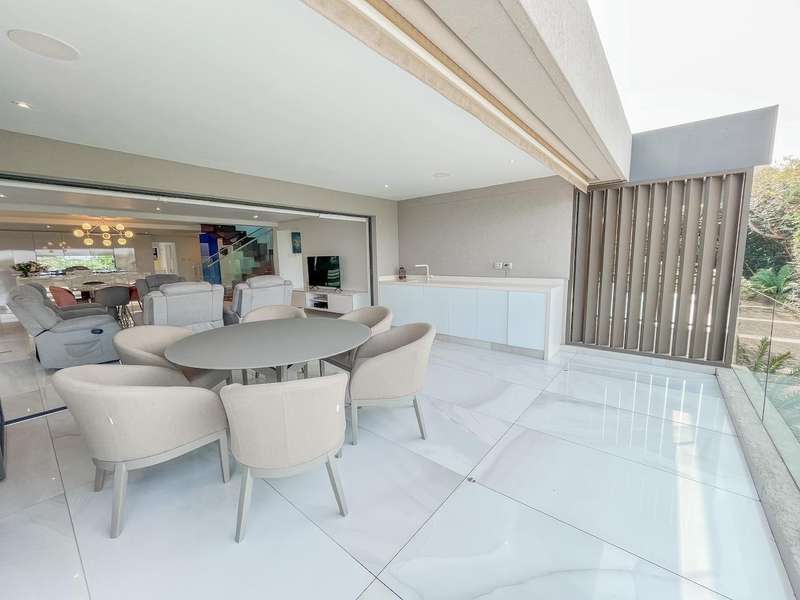 Ultra-Modern Coastal Masterpiece with Panoramic Sea Views Step into contemporary coastal elegance with this exceptional designer residence in Zimbali Estate. Boasting uninterrupted ocean vistas, cutting-edge finishes, and the ultimate in estate living, this home is a sanctuary of style and comfort. Ground Floor ?Çô Smart Design & Energy Efficiency An oversized double garage with built-in cupboards offers abundant storage. The home?ÇÖs inverter, battery, and solar power system ensure uninterrupted electricity?Çöan essential for modern living. A gentle staircase leads to the first-floor entrance. First Floor ?Çô Ocean Views & Seamless Flow The spacious lounge opens onto a covered patio, perfectly framing the Indian Ocean. The open-plan dining area connects effortlessly to a sleek kitchen featuring high-end appliances, soft-close cabinetry, and a separate scullery. A guest WC completes this level. Upper Level ?Çô Private Luxury The main suite enjoys the prime sea-facing position with a large private balcony. The en-suite bathroom offers premium fittings and generous space. A second en-suite bedroom ensures guest comfort, while a versatile third bedroom/study features custom shelving and ceiling-high cupboards. Zimbali Lifestyle As a resident, you?ÇÖll have access to Zimbali?ÇÖs world-class amenities including a championship golf course, pristine beaches, swimming pools, restaurants, nature trails, and 24-hour security?Çöall just minutes from Ballito?ÇÖs shopping, dining, and schools. Key Features: Panoramic sea views from multiple levels Energy-efficient inverter, battery & solar power Oversized double garage with built-in storage Luxury finishes throughout Private balcony off main suite Access to all Zimbali amenities Live the lifestyle you deserve?Çöbook your private viewing today.