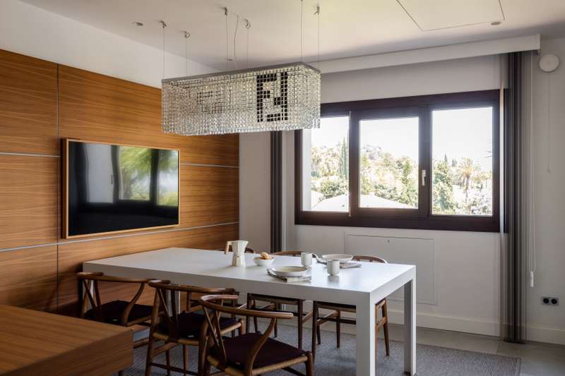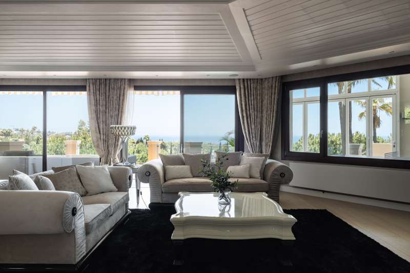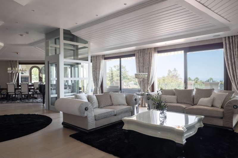 Nestled on a spacious 3,920 square meter plot, this generational Estate boasts a total built area of 842 square meters, spread across four floors with an elevator, located in one of Marbella's prime urbanizations. Surrounded by the lush nature of Las Chapas and high-end properties, the villa's classic Mediterranean architecture is enriched with modern, luxurious elements, offering breathtaking views of the Mediterranean Sea. Originally built in 1994, the villa underwent an elegant makeover in 2018 by its current owners, seamlessly blending its traditional charm with contemporary sophistication. Upon entering, you are immediately greeted by stunning sea views visible from every part of the house. The main level is designed for comfort and entertainment, featuring a spacious living room, dining area, family kitchen with heated floors, and a cozy relaxation room. Each space flows naturally into the next, perfect for hosting gatherings or enjoying quiet family time. Ascending to the uppe