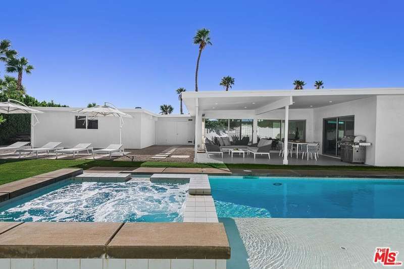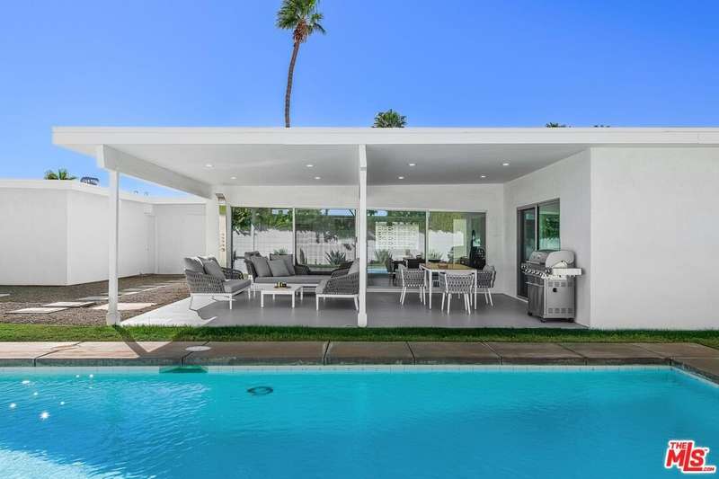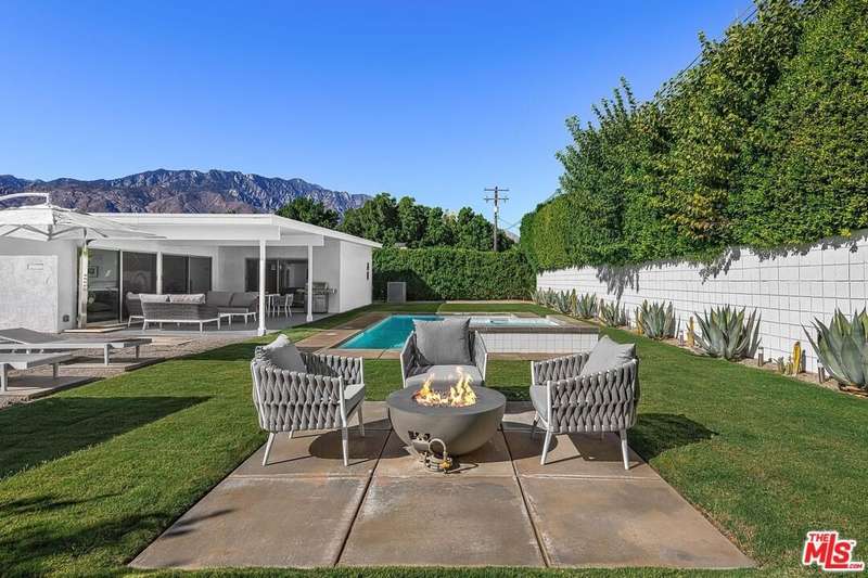 Welcome to this stunning, reimagined 3-bedroom, 2-bath Hugh Kaptur home, a true Palm Springs Modern gem. Beautifully updated with a brand-new pool and spa, remodeled bathrooms, new flooring, refreshed landscaping, and upgraded electrical. Enjoy top-of-the-line Viking Professional appliances, a new HVAC system with all-new ducting, and Fleetwood windows throughout for comfort and serenity. This approximately 1,600 sq. ft. home has had its utility lines buried to showcase panoramic mountain views. Outdoor living includes a fire pit, tanning shelf, and extended patio, perfect for entertaining. Additional features include a newer roof, updated pool equipment, and a finished garage.Offered furnished, this home is move-in ready an exceptional opportunity to live in a piece of Palm Springs Modern history.