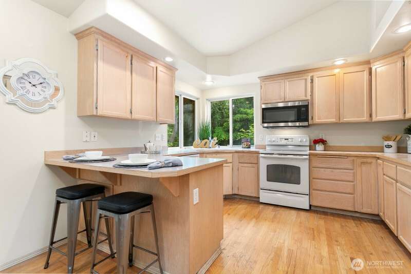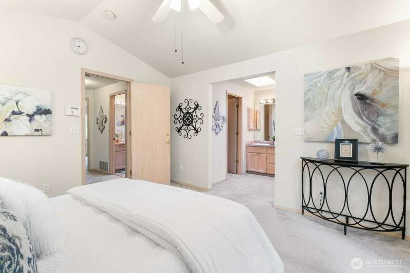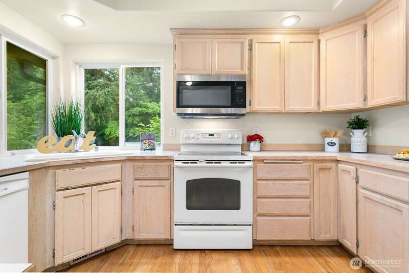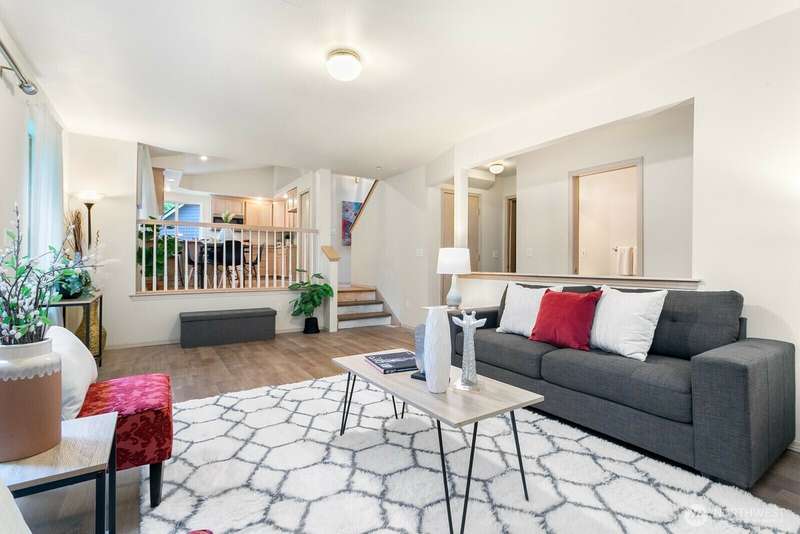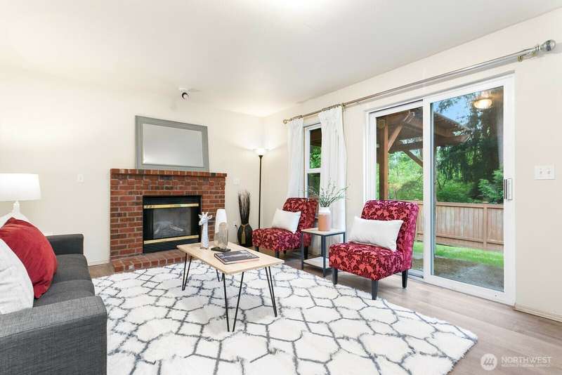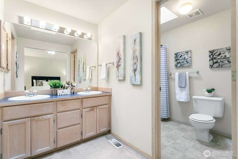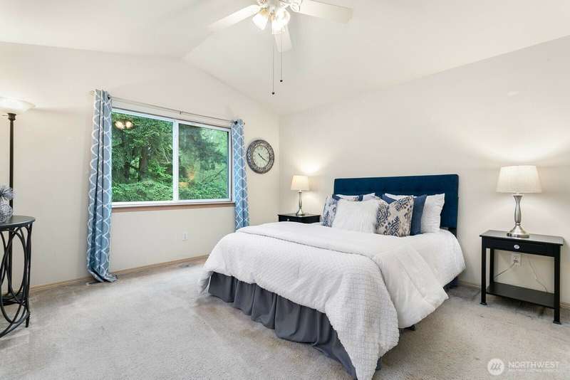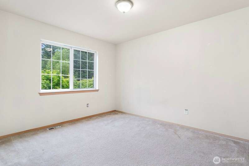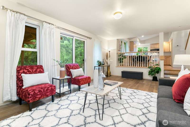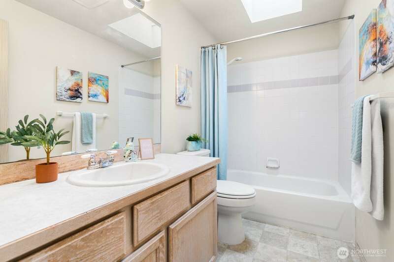 Wonderful tri-level home on a cul-de-sac backing up to a greenbelt providing privacy. Vaulted ceilings & skylights add a light & airy feel throughout. The spacious kitchen w/ eating area overlooks the lower-level living room w/ a cozy fireplace, half bath, & laundry room. The entry living room can serve as a formal dining space. Upstairs features a primary suite w/ attached bathroom, walk-in closet, & ceiling fan, plus two additional bedrooms & a full bathroom. Enjoy a fully fenced backyard, covered back patio, inviting front porch, mature landscaping, Hardie Plank siding, & two-car garage. Leafguard gutter system w/ transferable warranty. Convenient location near shopping, parks, lakes, transportation & highways.
