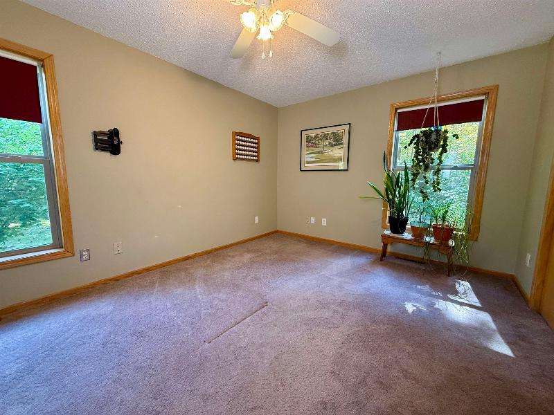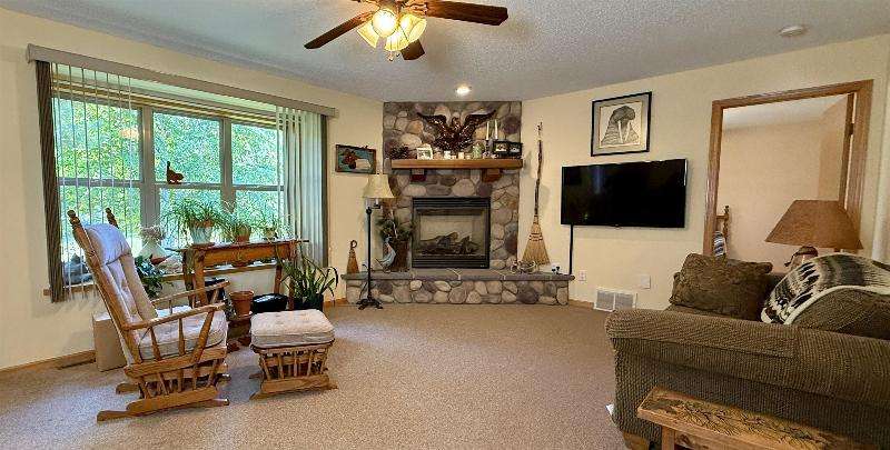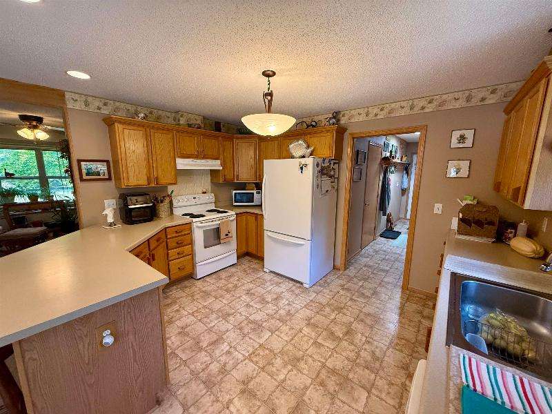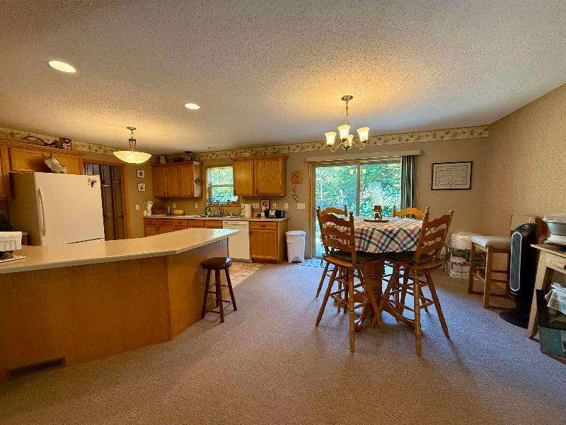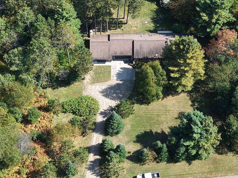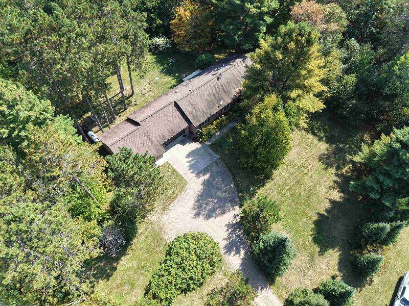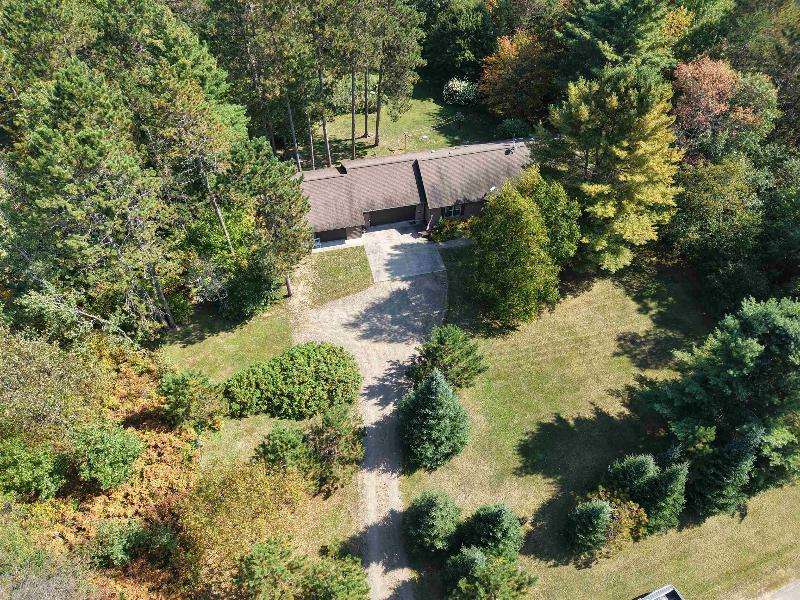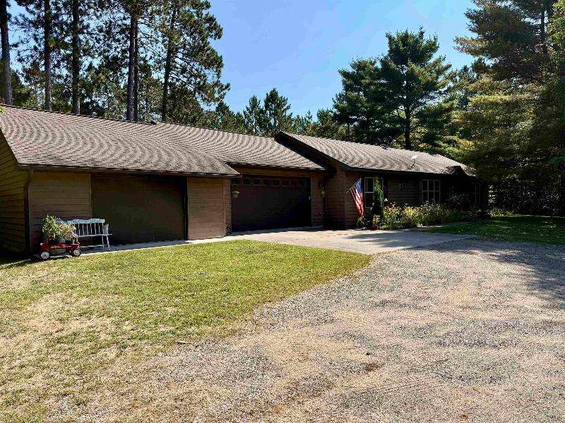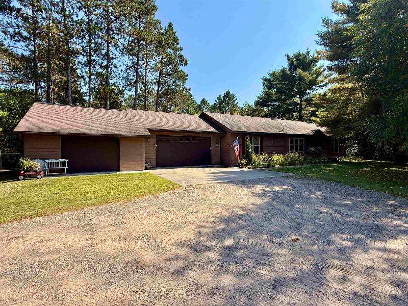 Year around home in a private setting. 3-bedroom, 2-bath with vaulted living room ceiling and gas fireplace. Three solar tube skylights bring natural light into darker areas. Attached 2-car garage with an additional garage/workspace. The unfinished basement had extra wall insulation and has a tall ceiling, giving it a spacious feel. The 5.4 acre lot is wooded with trails, and a fenced area for a garden or your furry friends. This great location has access to all the Northwoods lakes and recreation opportunities!