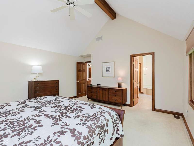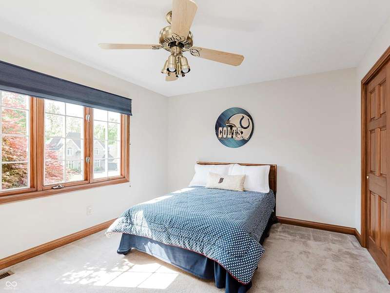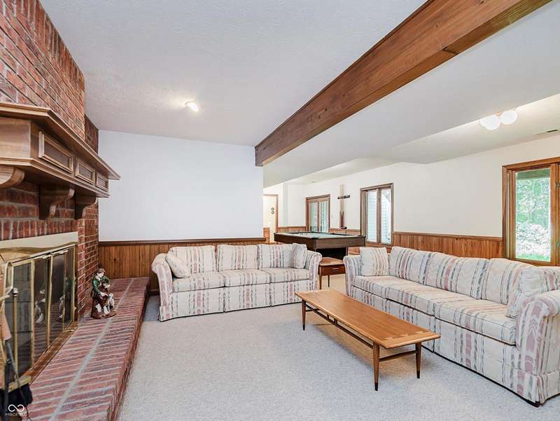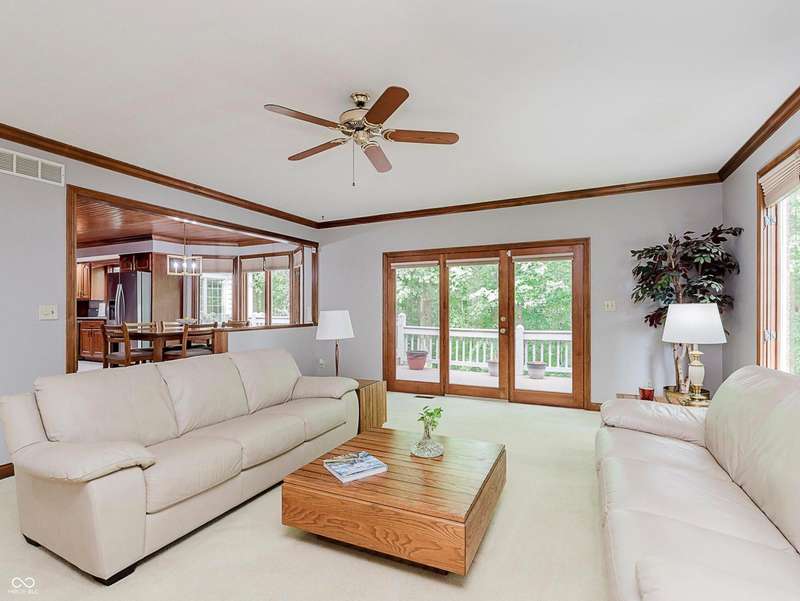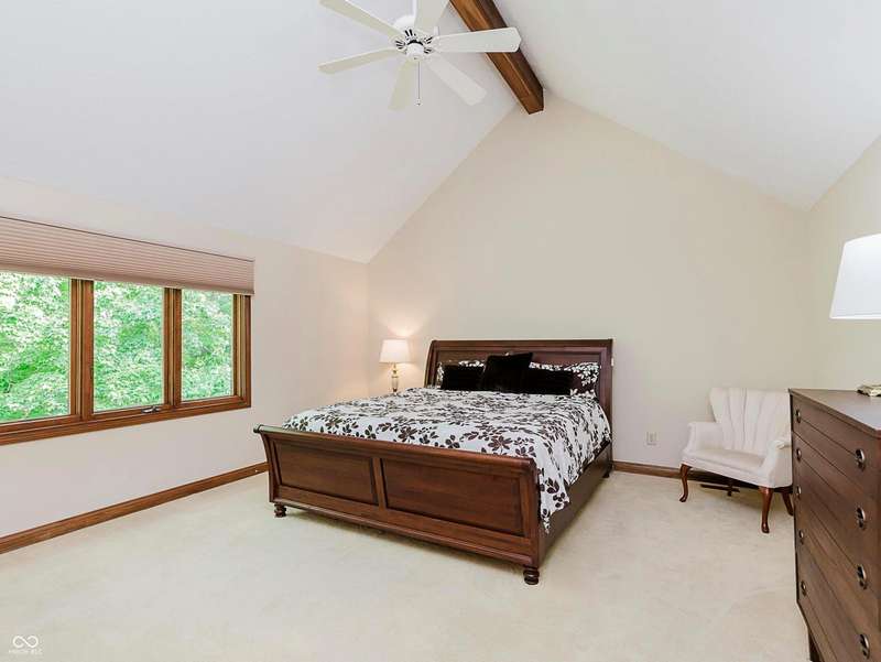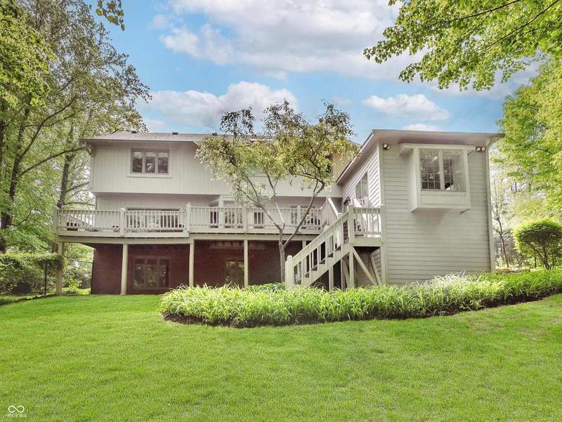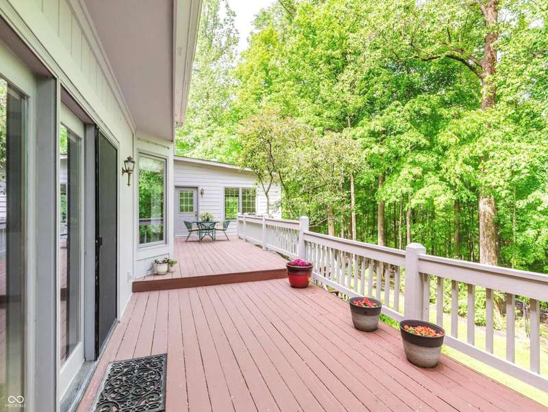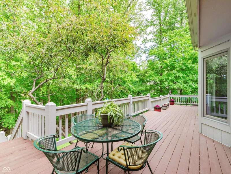 Back on the market through no fault of the Sellers! With lower interest rates and limited inventory, now is the perfect time to make a move. Nestled on 1.21 wooded acres in Geist, this 5-bedroom retreat offers the privacy and serenity you've been looking for. Enjoy views of nature from the expansive main-level deck overlooking the fenced backyard and mature trees stretching to Fall Creek. Inside, a generous and flowing floor plan balances formal and casual living. The elegant living room welcomes you with soaring cathedral ceilings and a gas fireplace, while the open kitchen and adjoining great room with built-ins and brick fireplace create a warm gathering place. Formal dining with tray ceiling is perfect for special occasions. This home features generously sized rooms throughout, especially all of the bedrooms. Two primary suites (one on the main level with deck access, ideal for guests or in-laws and another upstairs with a walk-in closet, double sinks, garden tub and shower) give you flexibility and comfort. Three additional bedrooms plus a hall bath complete the upper level. The walk-out lower level is made for entertaining with a wet bar, billiards/game area, family room with fireplace, full bath, and ample storage. A newly added exterior storage room with ramped entry provides even more space for lawn equipment, bikes, and outdoor furniture. Conveniently located near shopping, dining, and the reservoir; this is Geist living at its best.
