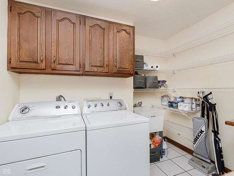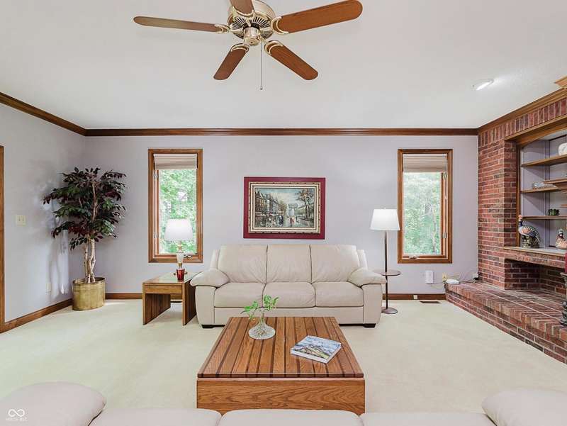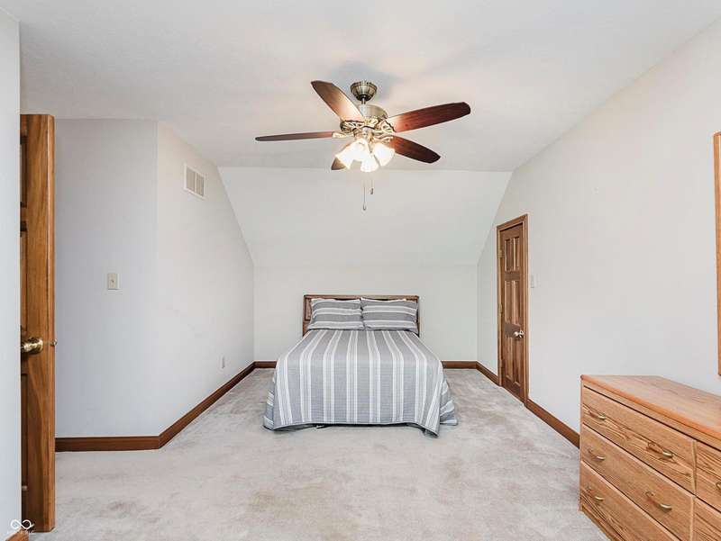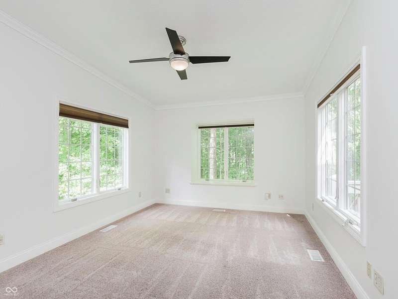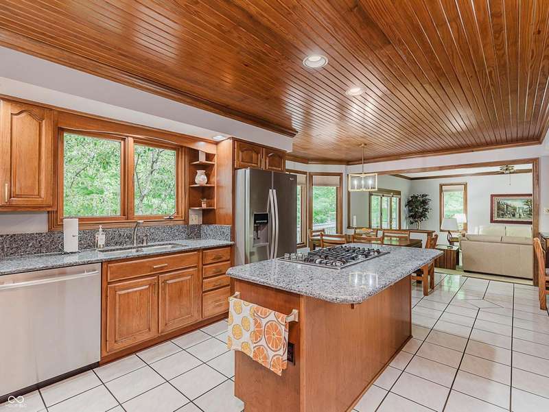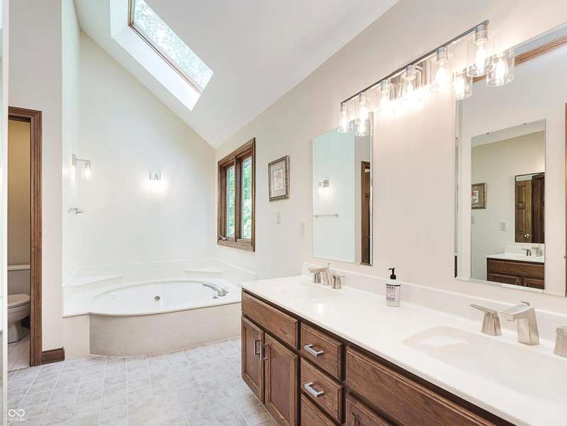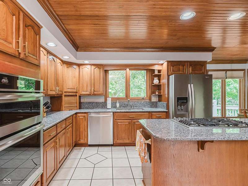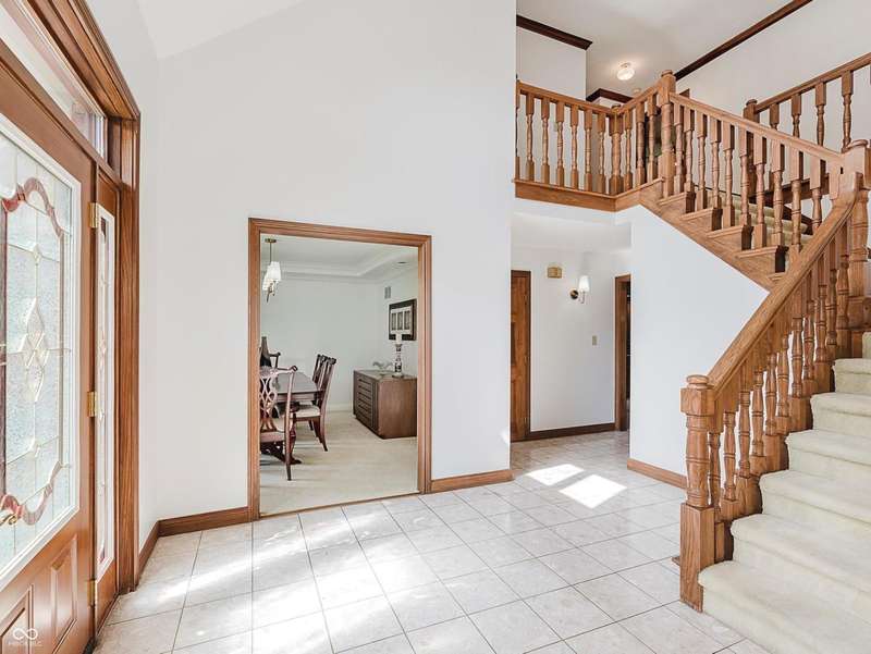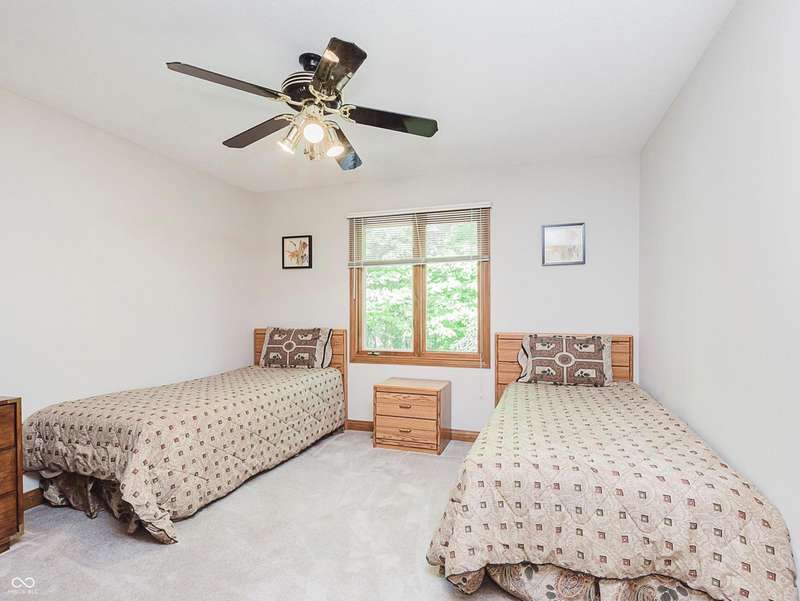 Back on the market through no fault of the Sellers! With lower interest rates and limited inventory, now is the perfect time to make a move. Nestled on 1.21 wooded acres in Geist, this 5-bedroom retreat offers the privacy and serenity you've been looking for. Enjoy views of nature from the expansive main-level deck overlooking the fenced backyard and mature trees stretching to Fall Creek. Inside, a generous and flowing floor plan balances formal and casual living. The elegant living room welcomes you with soaring cathedral ceilings and a gas fireplace, while the open kitchen and adjoining great room with built-ins and brick fireplace create a warm gathering place. Formal dining with tray ceiling is perfect for special occasions. This home features generously sized rooms throughout, especially all of the bedrooms. Two primary suites (one on the main level with deck access, ideal for guests or in-laws and another upstairs with a walk-in closet, double sinks, garden tub and shower) give you flexibility and comfort. Three additional bedrooms plus a hall bath complete the upper level. The walk-out lower level is made for entertaining with a wet bar, billiards/game area, family room with fireplace, full bath, and ample storage. A newly added exterior storage room with ramped entry provides even more space for lawn equipment, bikes, and outdoor furniture. Conveniently located near shopping, dining, and the reservoir; this is Geist living at its best.
