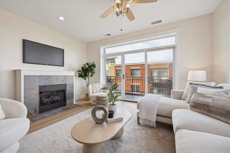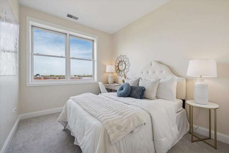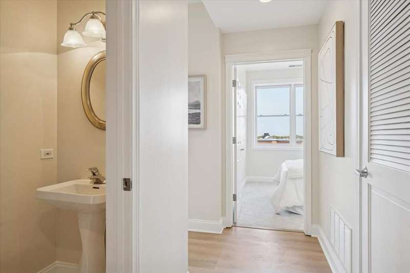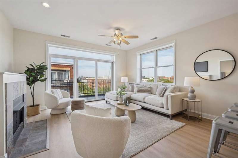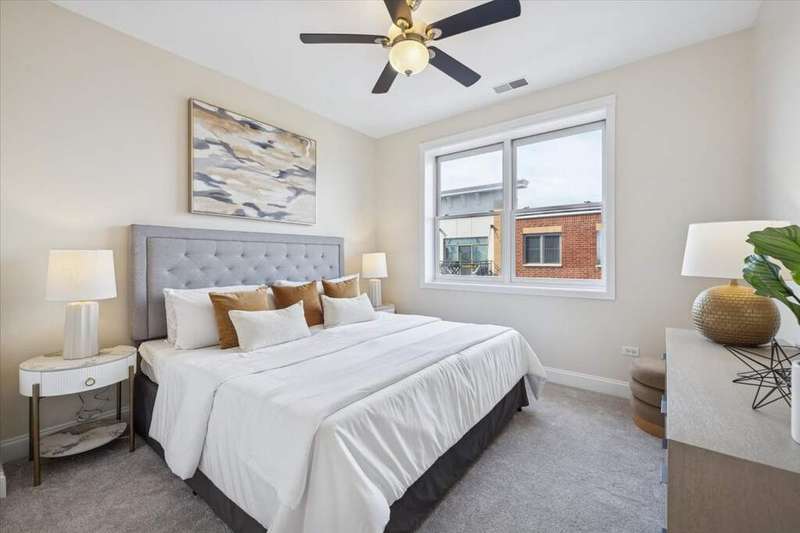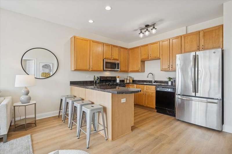 Gorgeous Corner Penthouse Condo, just steps from The 606 Trail! Elevator building, only 4 condos per floor. Inside you'll find brand new flooring throughout, eye-catching custom light fixtures, a kitchen outfitted with 42" cabinets, and a spacious breakfast bar - perfect for casual mornings or entertaining. The open-concept living/dining area flows seamlessly onto a balcony, ideal for your morning coffee or evening grill. Cozy up in the living room with a gas-lit fireplace in those chilly Chicago evenings. The smart split floor plan offers ideal privacy for hosting guests and carving out a home office space. The primary bedroom with an ensuite bath can easily accommodate a king bed. Deeded gated parking space + large floor to ceiling storage unit included. In unit WD. HVAC & water heater 2021. Pet friendly. Residents also enjoy access to a gated green space at the corner of St. Paul and Winnebago. Location? Spot on. You're a quick walk to not one, but two Blue Line stops, plus a trio of grocery stores, countless restaurants, boutique shops, and everything Bucktown + Wicker Park has to offer. Easy access to the Metra and 90/94. Well maintained building in a hard to beat location!