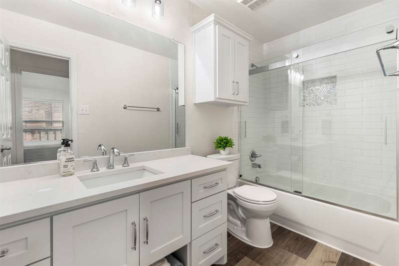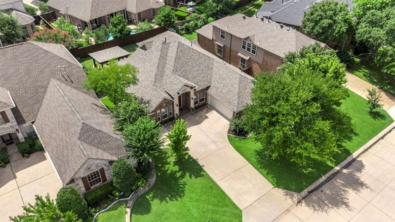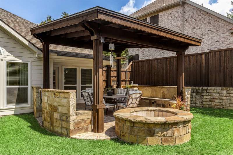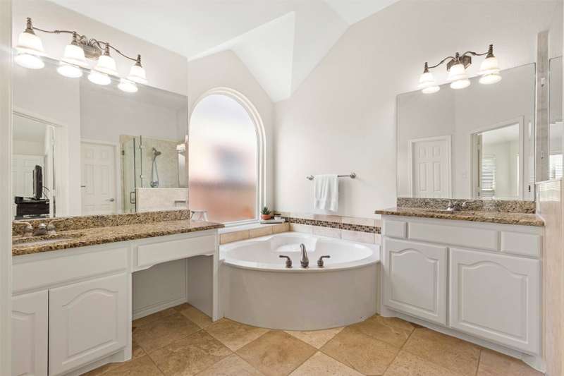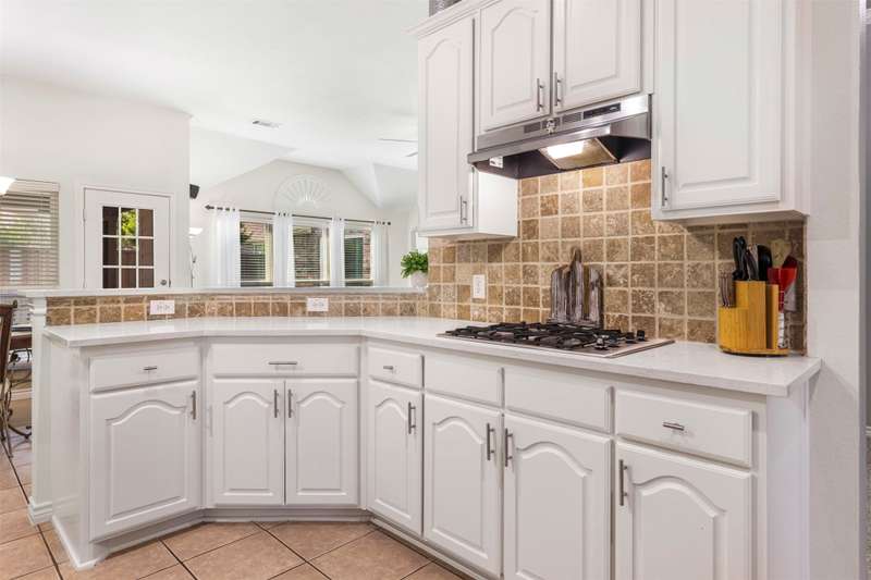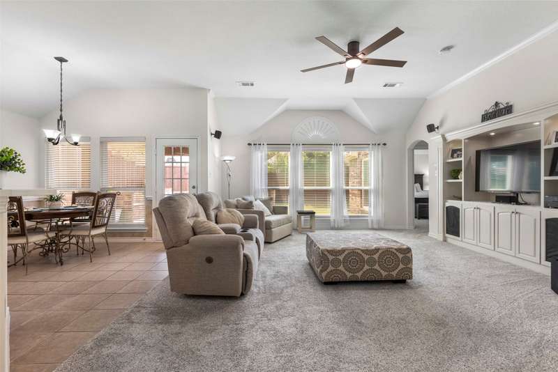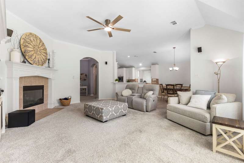 Light, Bright & Open beautifully maintained 4-bedroom, 2-bath home located in the highly sought after Castlewood neighborhood of Highland Village. Featuring a light-filled, open floor plan, offering a perfect blend of comfort, style, and functionality. The spacious living area centers around a decorative stone fireplace with gas logs, creating a warm and inviting focal point. The eat-in kitchen is a chefs dream with a gas stove and vent a hood venting to the exterior, built in microwave and spacious breakfast bar. The oversized master suite offers a tranquil retreat, complete with a sitting area and a master bath featuring dual sinks, separate vanities, garden tub, a separate shower plus a large walk in closet.Step outside into your amazing outdoor living space, designed for year-round enjoyment. Whether you're hosting a BBQ with the built-in grill, gathering around the fire pit, or relaxing in the grassy yard, this house is perfect for entertaining friends and family. Walking distance to the community pool, club house, tennis and pickleball courts