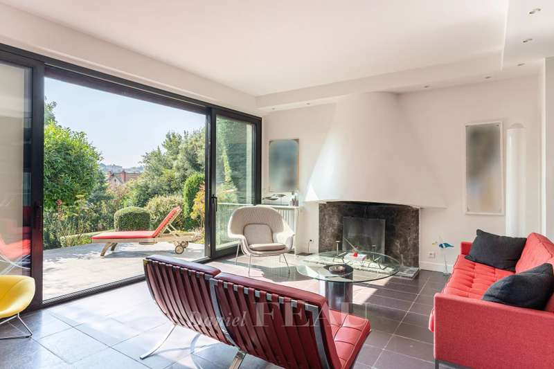 Coteaux neighbourhood. This mid 20th century architect-designed property with a 1930s style offers 230 sqm of living space. Set in a south-facing 1306 sqm plot, it includes a rotunda entrance hall, a double living/reception room opening onto a terrace, a kitchen with dining facilities, and a dining room. The first floor comprises a study, three bedrooms and a bathroom. A master bedroom opening onto a terrace enjoying a panoramic view, a dressing room and a bathroom. On a total basement with a recreation room, a utility room, a boiler room and a wine cellar. With a garage. In a convenient location a stone’s throw from the schools, the shops, Place du Marché and the station.
