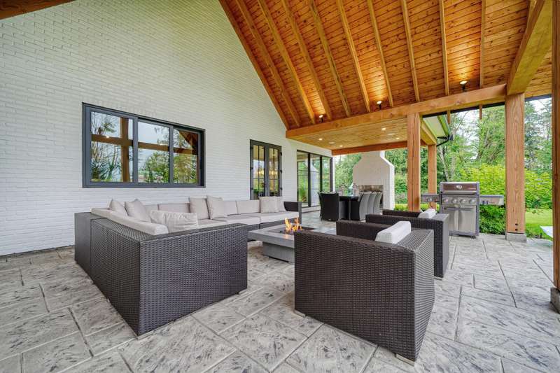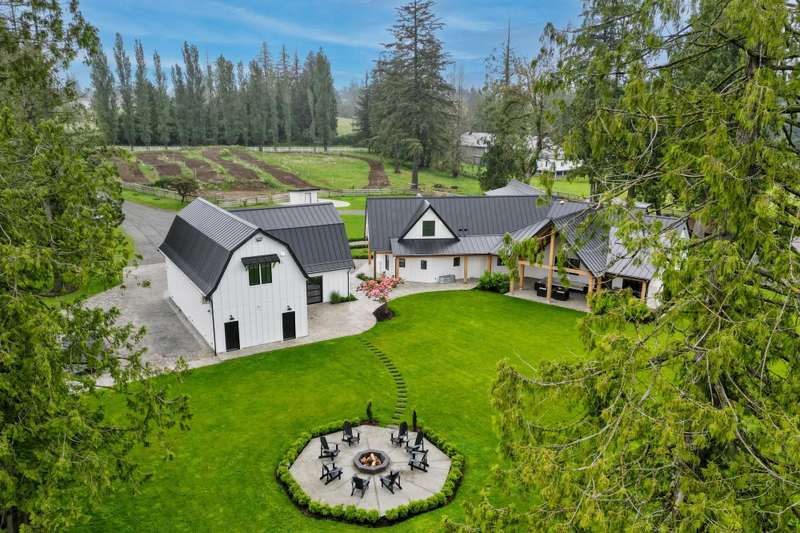 Welcome to this gated, custom-built luxury estate in Langley, masterfully designed by Su Casa Designs with interiors by PlaidFox. Privately set back on a long driveway, this home is the perfect blend of elegance, function, and privacy. The gourmet kitchen has vaulted ceilings, a butler’s pantry, double dishwashers and fridges, and a wine cooler—ideal for entertaining. Two Primary Bedrooms on the main - features a spa-style ensuite with steam shower, soaker tub, and walk-in closet. Outdoors, relax by the gas or wood fire pit, or explore the lush garden, playground, and fully fenced treed backyard. For multi-generational living, a beautifully appointed suite offers privacy and independence. Two barns, two fenced pastures, and a detached shop complete this rare offering.