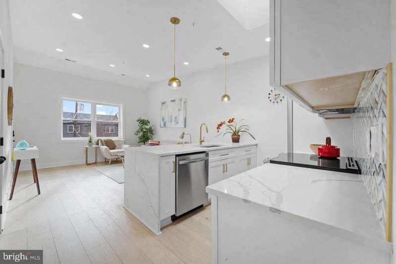 Welcome to city living at its finest in this exceptional newer construction residence nestled in one of DC's most vibrant and evolving neighborhoods. This beautifully designed home offers the perfect blend of modern luxury and everyday convenience, featuring engineered hardwood floors, dramatic custom lighting, and oversized windows that fill the space with natural light (no matter what time of day) and offer picturesque neighborhood views. The spacious open-concept living area provides ample room to relax, entertain, or work from home, seamlessly connecting to a designer kitchen that is truly the heart of the home. Outfitted with sleek quartz countertops, a stunning waterfall island, custom European cabinetry, and a top-tier stainless steel appliance suite, this kitchen is a dream for home chefs and entertainers alike. With 1 dedicated parking space, one bedroom and a den (including a skylight and closet), plus two graciously-sized bathrooms, this home is thoughtfully designed for both comfort and flexibility. The primary bedroom is bathed in sunlight with floor-to-ceiling windows and includes generous closet space and an en suite bathroom with beautiful marble mosaic floors and a luxurious rainfall shower. The den, which features a skylight for natural light and its own dedicated closet, is an ideal guest room, home office, or flex space. A second full bathroom is conveniently located off the hallway, offering access for guests or a roommate. Thoughtful details are found throughout, from the wide-plank white oak flooring and abundant recessed lighting to the modern pendant fixtures that illuminate the kitchen island. A new energy-efficient stackable washer and dryer is tucked into a hallway nook, along with an oversized closet large enough to accommodate bike storage or other essentials. Located on a quiet, residential street yet just steps away from major city conveniences, the home is within easy walking distance of the Rhode Island Ave Metro, RIA DCs 20-acre mixed-use development, Home Depot, Giant Grocery Store, and the US Social Security Administration. The surrounding area also offers an exciting mix of dining, retail, and entertainment options, including Union Market, Alamo Drafthouse cinema, and the Kraken pickleball courts.