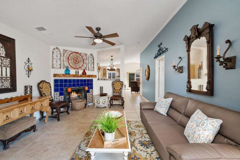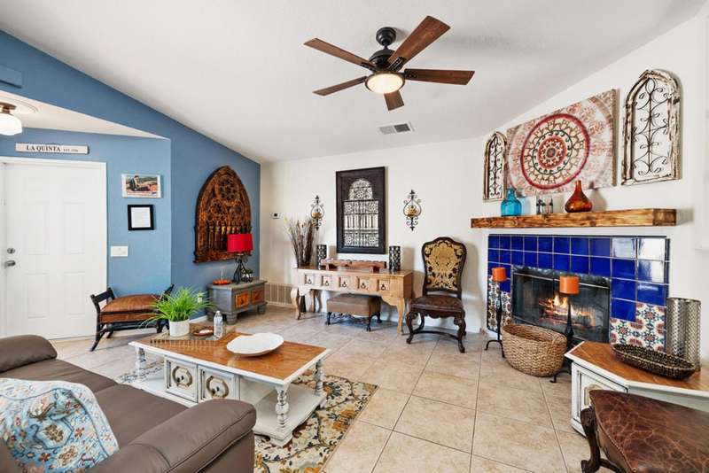 High up in the La Quinta Cove with majestic mountain Views this 3 bedroom 2 bath pool home is perfect for entertaining. Front gated courtyard offers privacy for front door. Large master w/ upgraded vanity in master bathroom. Kitchen has granite tile counters and backsplash. Ceramic tile flooring throughout the home, ceiling fans and a cozy wood fireplace in living room. Recently new desert landscaping in front yard. Close to Old Town La Quinta,restaurants and shops, Fritz Burns Community Park. Enjoy hiking and walking trails nearby. This is the perfect vacation rental. Perfect rental for the horse show, Coachella Festival & Stagecoach Call for summer rates!