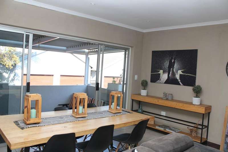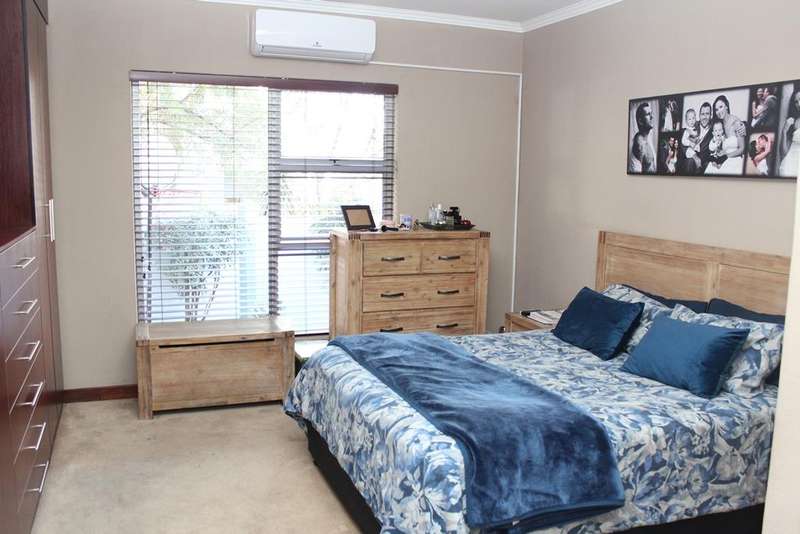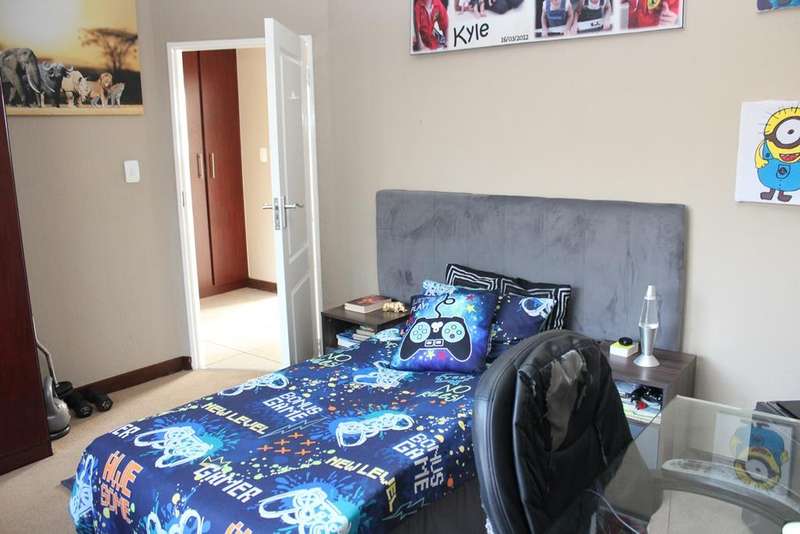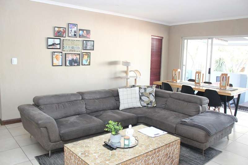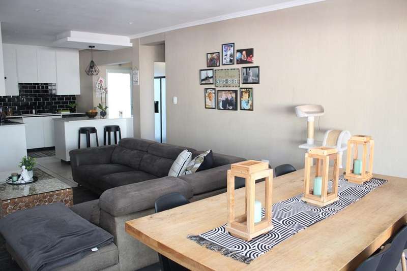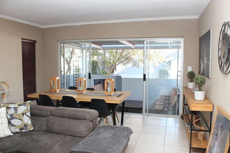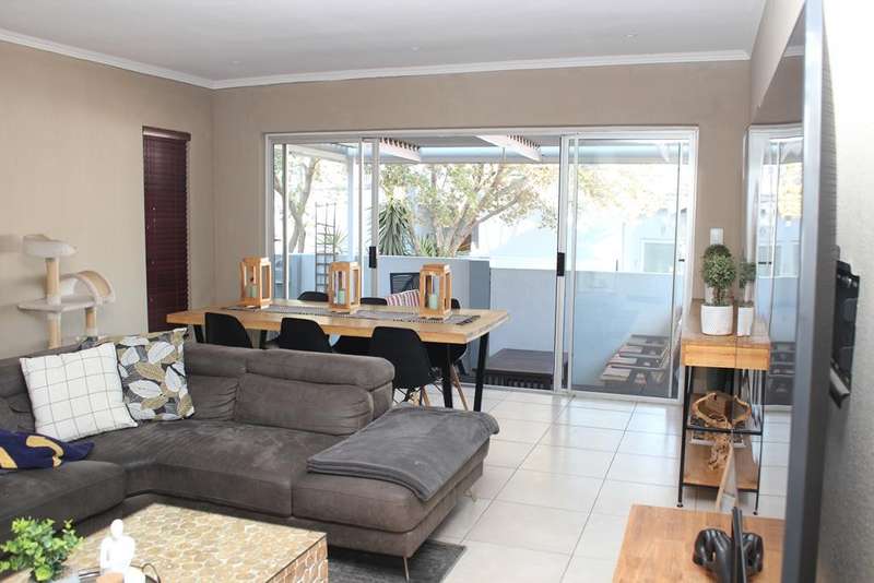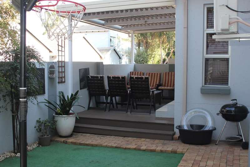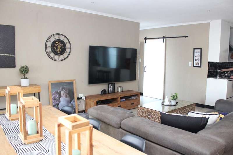 This well-presented townhouse offers a wonderful combination of modern finishes, comfort, and practicality ?Çô all within the security of estate living. The heart of the home is a brand-new contemporary kitchen that overlooks the open-plan lounge and dining area, creating an inviting space for both everyday living and entertaining. Sliding doors extend the living area onto a covered patio, ideal for outdoor relaxation. Downstairs also features a versatile study or playroom, a guest cloakroom, and the main en suite bedroom, complete with ample cupboard space and a stylish bathroom. Upstairs, you?ÇÖll find two generously sized bedrooms, both serviced by a modern family bathroom. Extra passage cupboards provide additional storage, ensuring a neat and organized living environment. The home is complemented by a well-maintained garden, a double garage with direct access, and additional parking in front for two more vehicles. Perfectly suited for families or professionals, this property offers all the benefits of secure estate living in a welcoming and modern setting.
