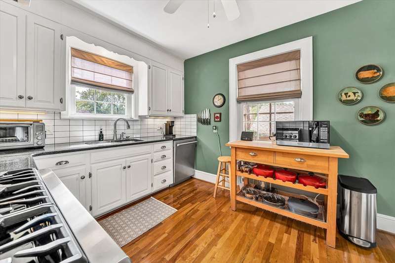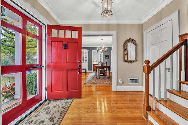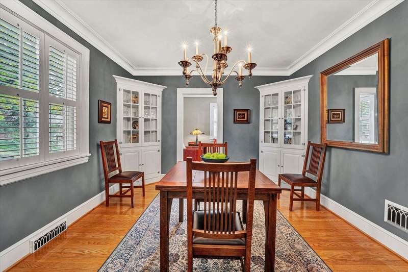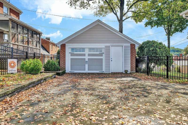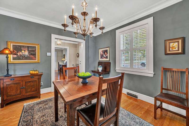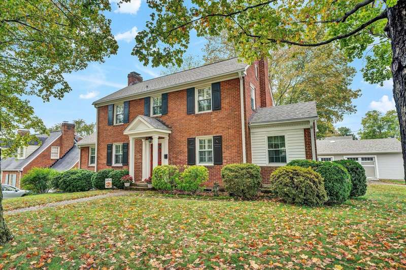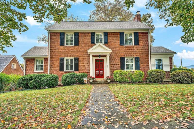 Nestled on a desirable corner lot in Raleigh Court, this immaculately maintained brick Colonial offers timeless charm and modern updates in one of SW Roanoke's most sought-after neighborhoods. You will love the mountain views that surround the home. Inside, you'll find gleaming hardwood floors and elegant crown molding throughout. The main level features a welcoming den, formal living room with a cozy gas log fireplace, a half bath, a spacious dining room, and a stunning eat-in gourmet kitchen outfitted with high-end stainless steel appliances, including a Thermador gas range and range hood, plus granite countertops. Upstairs boasts three generously sized bedrooms and a full bath, with a walk-up attic and unfinished basement providing excellent