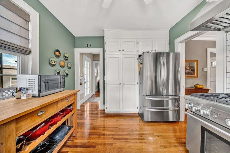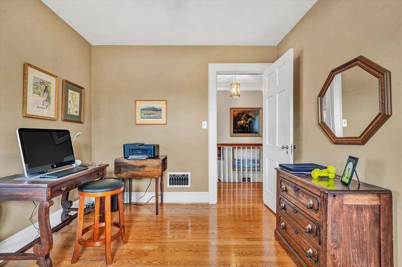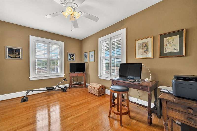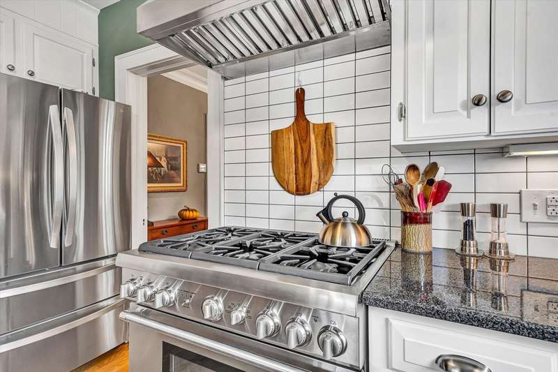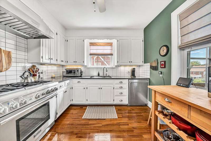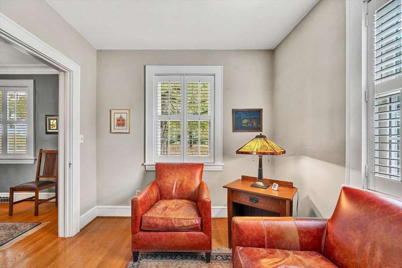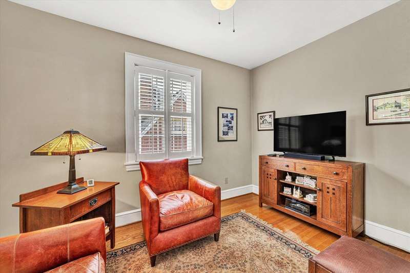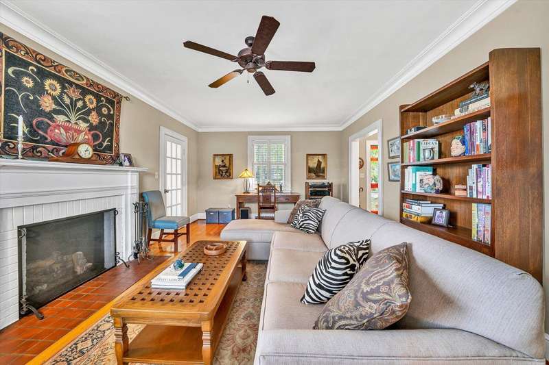 Nestled on a desirable corner lot in Raleigh Court, this immaculately maintained brick Colonial offers timeless charm and modern updates in one of SW Roanoke's most sought-after neighborhoods. You will love the mountain views that surround the home. Inside, you'll find gleaming hardwood floors and elegant crown molding throughout. The main level features a welcoming den, formal living room with a cozy gas log fireplace, a half bath, a spacious dining room, and a stunning eat-in gourmet kitchen outfitted with high-end stainless steel appliances, including a Thermador gas range and range hood, plus granite countertops. Upstairs boasts three generously sized bedrooms and a full bath, with a walk-up attic and unfinished basement providing excellent