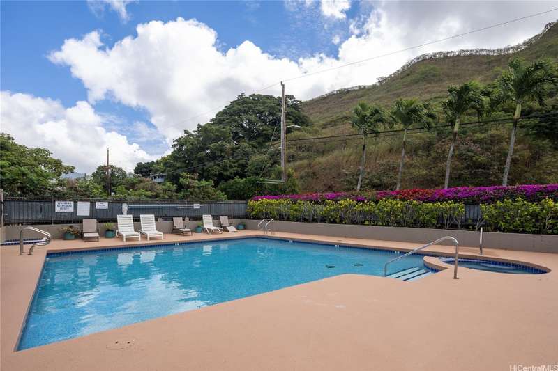 Investors only at this time. Unit rented until June 2026 for $2100. Spacious 1 Bedroom, 1 Bathroom with 1 PARKING stall in secure, gated community in Dowsett Point - Metro Honolulu. This corner-end unit located on the main level offers ultimate convenience-NO STAIRS or elevators needed-perfect for easy access in this PET-FRIENDLY complex. Enjoy stunning mountain and OCEAN views from your unit while taking advantage of resort-style heated pool and tennis courts. Unit has full size WASHER/DRYER. Building is VA APPROVED and has 100% insurance. **ASSUMABLE VA LOAN - 3.275% INTEREST RATE!** Loan balance as of 03/31/25: $441,000**.